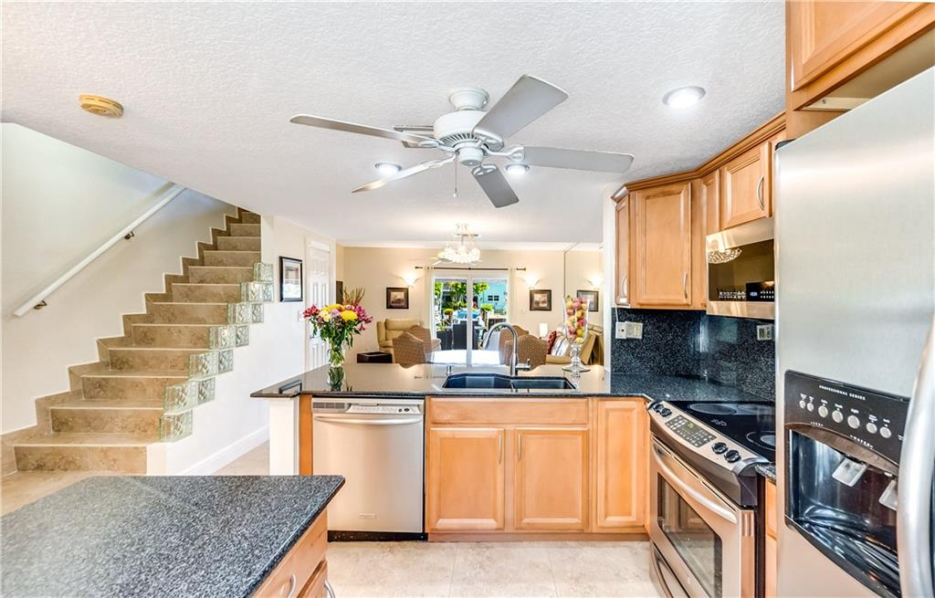 *RARE OPPORTUNITY* This light, bright and beautifully remodeled townhome is immaculate and move-in ready. Open floor plan- kitchen boasts granite counters, light wood cabinets and stainless-steel appliances, opening into the dining area and living room. Enjoy your own private oasis, with a patio and outdoor kitchen overlooking the waterways. Fish off the dock or appreciate the most spectacular sunsets. Upstairs you will find 2 master bedrooms, and new built-in laundry area (full size washer & dryer). Roof 2006, A/C 2018, Impact Windows & Doors, 1 of only 2 units with Hardie Board siding. Quiet and well maintained, Sun Harbor is a boating community (if available, you can buy/rent dock space). Community pool. Walk to the beach, restaurants, parks, Pompano Beach Pier and public golf course.