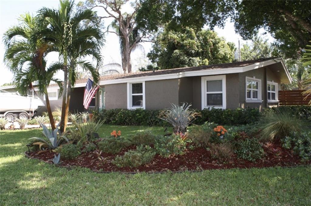 Tastefully remodeled 3/2 with all the amenities including stainless appliances,tile flooring, granit counters both kitchen and bathrooms. Extensive upgraded trim and crown moldings.Secluded master bedroom with Jacquzzi tub and frameless glass shower with double bowl sinks. A grand tropical back yard includes a large paver patio with a beautiful stone waterfall. A short walk down a natural stone path brings you to a secluded corner yard beach scene with white sand and a built in fire pit for a perfect entertain party. Underground 4 zone sprinklers for the luscious landscaping including drip lines under plant bases. Large lot slightly under 1/4 acre with mature trees.