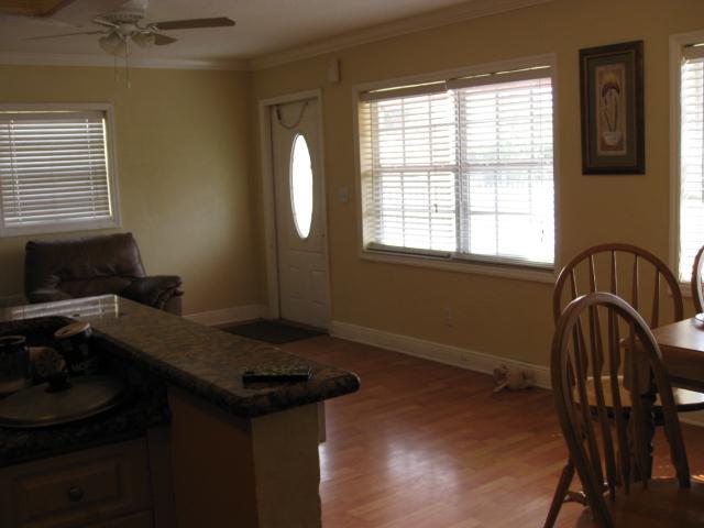 open kitchen. Cute house. Unpermitted items not warrantied by seller. Roof installed 2006.
