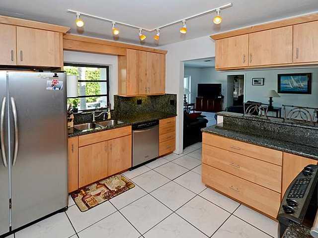 Wonderful opportunity to live in this prime Coral Ridge "East of Bayview" location just one lot from prestigious Intracoastal Drive! Updated kitchen with granite counters and stainless appliances. Tile flooring in main living areas, inside laundry room, f rench doors opens to spacious and completely private garden with screened porch and sparkling pool. Three bedrooms plus extra room ideal for den/office or formal dining. Much sought after area of Coral Ridge located in Bayview school district.