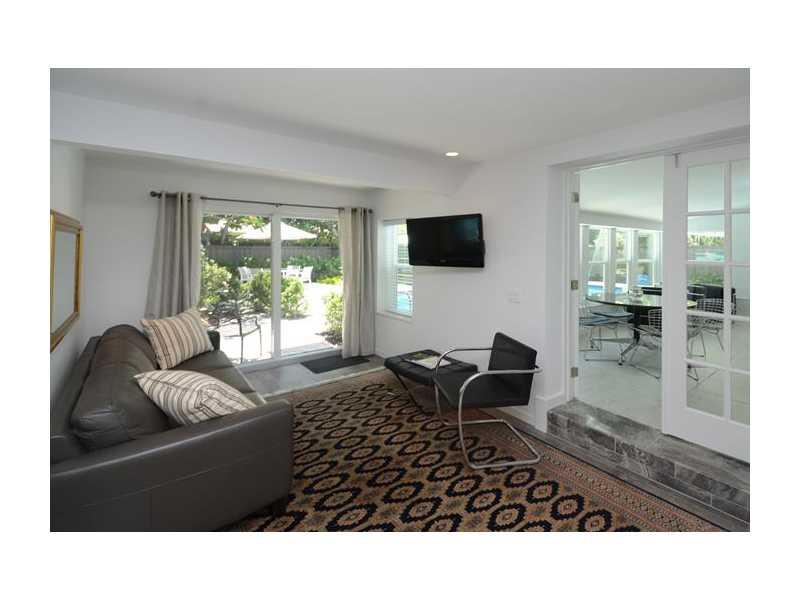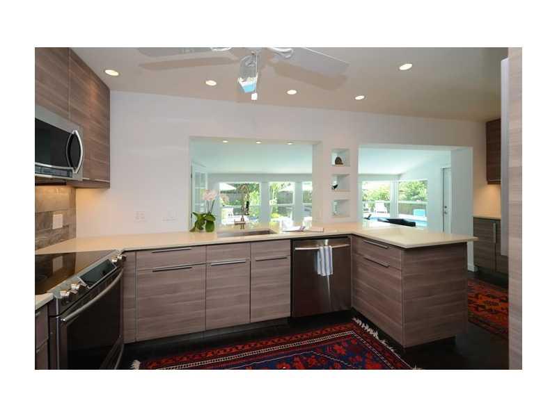 Magazine-quality 4BR/3BA whole-house renovation. Artfully re imagined Mid-Century offers hardwood floors, Quartz counter tops, modern basins and fixtures, fireplace, gallery lighting and impact windows and doors. Desirable tri-split bedroom plan offers ul timate privacy. Built-in cabinetry with wet bar and Quartz tops serve as a perfect multi-purpose entertaining center and Family rooms. The Zen-like back yard offers terraces, covered patio and outdoor shower and wrap around an over sized pool.