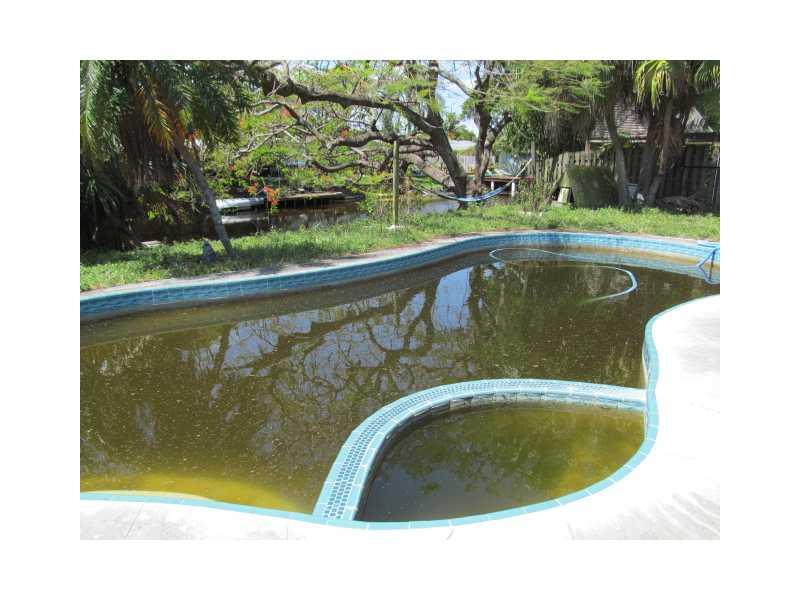 Great neighborhood, Waterfront 2/2 home with pool and Jacuzzi. Original kitchen and baths, but what a great yard. Just needs some cleaning up. New roof and A/C in 2008, Tile flloors in the main house and carpet in the bedrooms. Large screened porch.