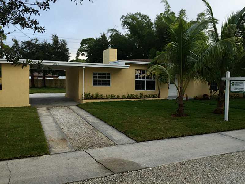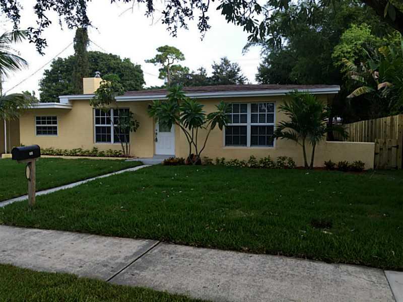 Very nice and unique 3 bedroom 1 bathroom home on a huge, private, fenced lot minutes from downtown Fort Lauderdale. The house has been professionally painted inside and out, features impact windows (except for back door), brand new flooring throughout, r enovated & updated kitchen and bathroom including granite counter top and brand new stainless steel appliances. The carport passes through to the back yard which is perfect for storing boats, trailers or whatever. Plenty of room for a pool or to add on.