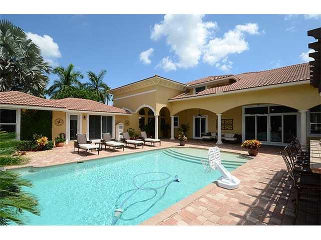 Welcome to this fabulous courtyard estate home right in the heart of Weston Hills Country Club in The Retreat! 7 bedrooms, 6.5 baths, guesthouse, loft/play area, 3 car garage, situated on a private 1/2 acre lot with panoramic golf course and lake views! I mpact windows and doors, marble floors, hardwood floors in bedrooms, recently updated bathrooms, new wood interior doors and millwork, new kitchen appliances, generous storage area,summer kitchen, lush tropical landscaping,well maintained! Don't miss out!