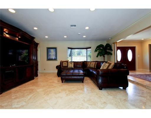 This beautifully designed country club home offers 4BR/+office/3.5BA/2CG/Pool and a popular split BR floorplan. Lg entry foyer opens to living/dining and family rooms and flows to open kitchen w/ bfast bar. Rich marble floors, granite, impact windows/doo rs and decorative columns are used throughout. The spacious master suite boasts a luxurious spa bath, dual walk in closets, sitting area and a separate office. Outside features 100' of waterfront, 45kw gen and a sunny pool area perfect for entertaining.