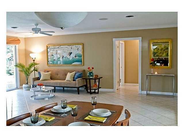 Chic Coral Ridge Isles remodeled 3/2 with open, split floor plan. Resort-style landscaping surrounds large covered patio perfect for year-round outdoor entertaining. Hurricane windows and doors. Two-car garage with additional storage. Indoor laudry room w ith new (2011) W/D plus laundry basin. Newer, well-appointed kitchen with corian counters. Master bedroom incl. walk-in closet and impact sliders. Oversized 2nd and 3rd bedrooms each contain double closets. 16-in beige tile. Surround sound. Floranda Elem.