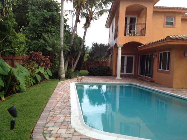 Beautifully renovated in 1999 Mediterranean style 2-story home in heart of Coral Ridge. Chicago brick circle drive, 2-car garage, double front door entry. Marble floors. Granite kitchen w/custom wood cabinets w/large eating area in kitchen. Large family r m, w/built-in entertainment center. Huge master bedroom/bath/suite upstairs w/jacuzzi tub & separate marble shower,bidet, open balcony off master overlooking pool, walk-in closet. All baths are marble w/marble vanities. Brick pool area. Must see this gem!