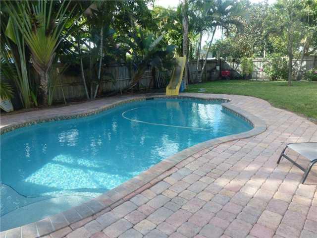 Adorable house, 2 bedrooms, 1 bath, 1 car carport. Very clean and immaculate. Delightful, tropical pool area and huge, fenced back yard. Hurricane shutters. Extensive use of pavers throughout property. Home has original, old style Barrel roof. No HOA.