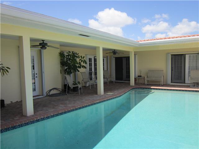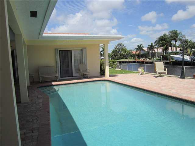 If you have been looking to own a great piece of our fabulous South Florida lifestyle, you have just found it!!! True 4 bedroom, 3 bath on deep water in Harbour Village just a few lots off the ICW and just East of Lake Capri (makes a great turning basin). 100 ft. wide canal leads right to the Intracoastal Waterway. French doors lead to the large pool and patio, also with pavers. Some of patio is under cover so you can get shade when you want it. Two car garage has a circular pavered driveway.