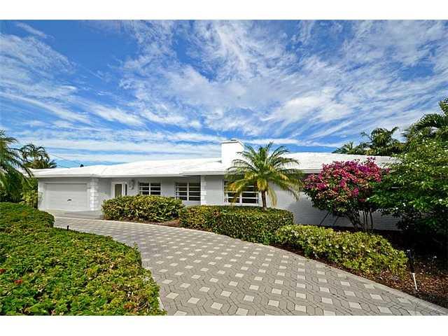 Charming, mid century home in the heart of Coral Ridge with 100 feet of deep water & four lots from the point. Double sided fireplace, french doors opening to a beautiful pool/patio, dual master suites, spacious two car garage and a central vac system are some of the unique features to this one-of-kind residence. Elegant landscaping, new private boat dock and an open/airy floor plan complete this tropical retreat. Best waterfront value in Coral Ridge and with a few updates, this home will be exquisite.
