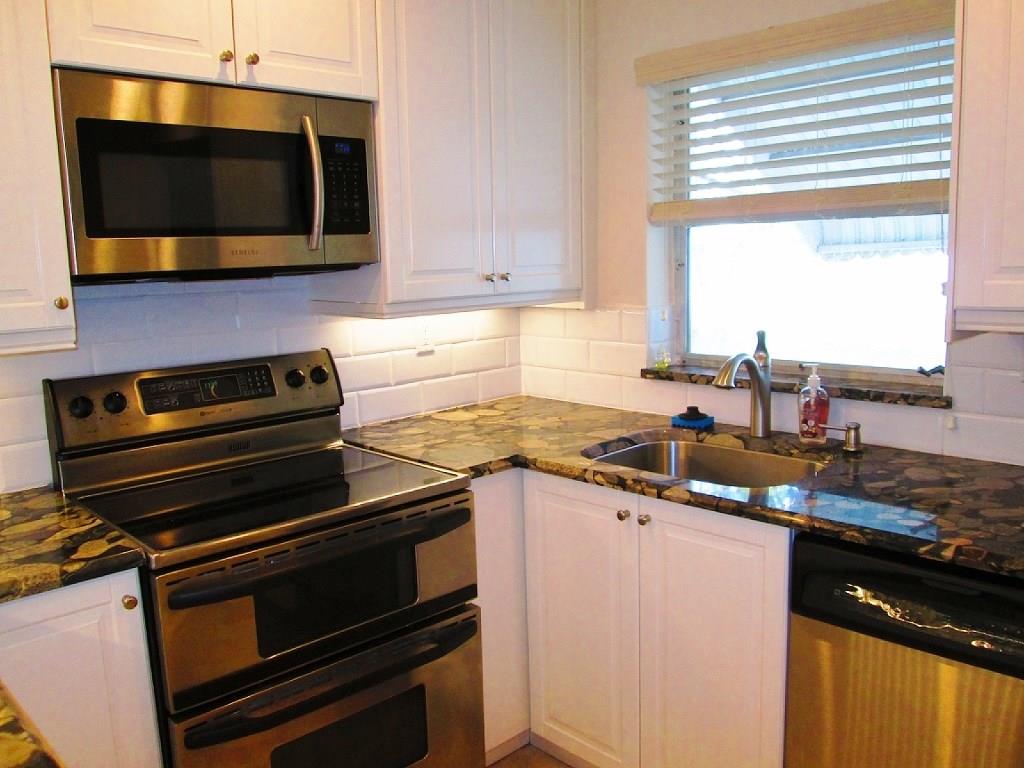 Fabulous LEISUREVILLE 55+! Sought after largest Attache model w/ outstanding open garden view. Every room top-of-the-line renovated: 24" tile, crown moldings w/ hi baseboards, granite/stainless kitchen w/ double oven range, high-end cabinetry, breakfast bar, under cabinet lighting & more! Stylish & modern bathrooms, simply the best. Tank less hot water. Fresh paint top to bottom. Great storage, Covered Back patio, Garage & double cement driveway. See it is to love it-you can just move in. NO LAND LEASE.
