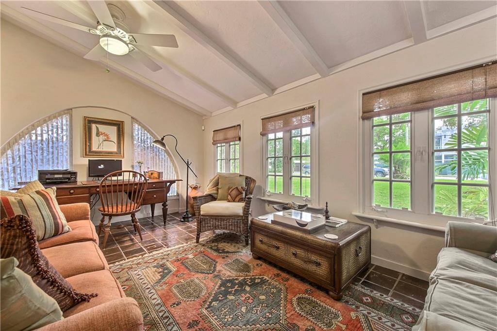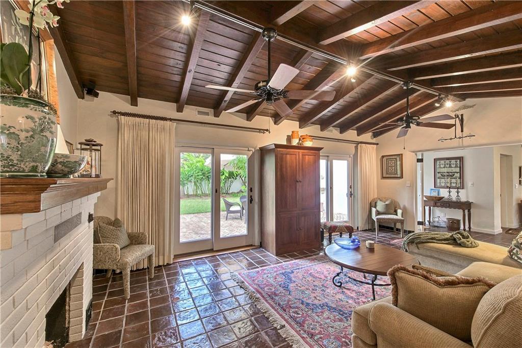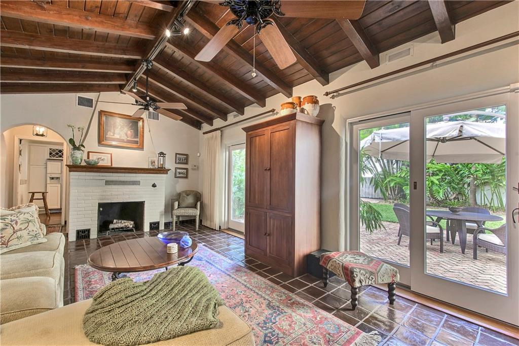 Authentic 1930's Mizner-like design offers thick stucco walls, colorful glazed Cuban tile floors, beamed vaulted ceilings, a wood burning fireplace and a gated portico entry. Carefully updated, restored and renovated this home boasts a formal foyer, a private bank of guest rooms, a secluded master and two well-proportioned lounges for entertaining. The dining room with vaulted ceiling offers a wall of windows that face a secluded courtyard terrace. Situated on a 145x75' lot and only steps to Las Olas