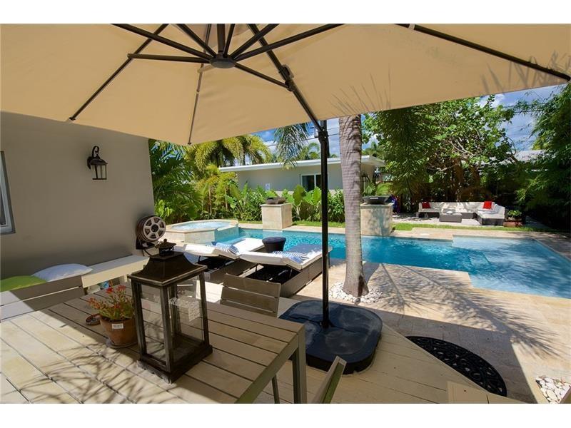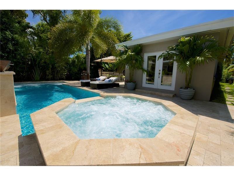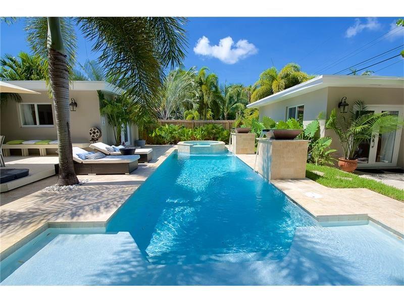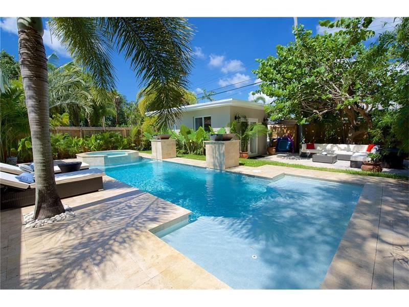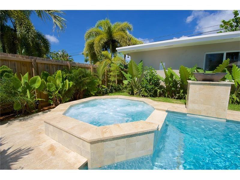 Paradise in Poinsettia Heights! Come view this gorgeous, completely renovated, resort-style tropical pool home in the upscale neighborhood of Poinsettia Heights. This property boasts NEW: impact windows and doors, travertine flooring, A/C, stainless steel appliances and W/D. Heated, salt water pool and jacuzzi surrounded by a professionally landscaped yard. Open floor plan, recessed lighting, two master suites, and even a gym in the separate backyard structure. Call today for a showing!