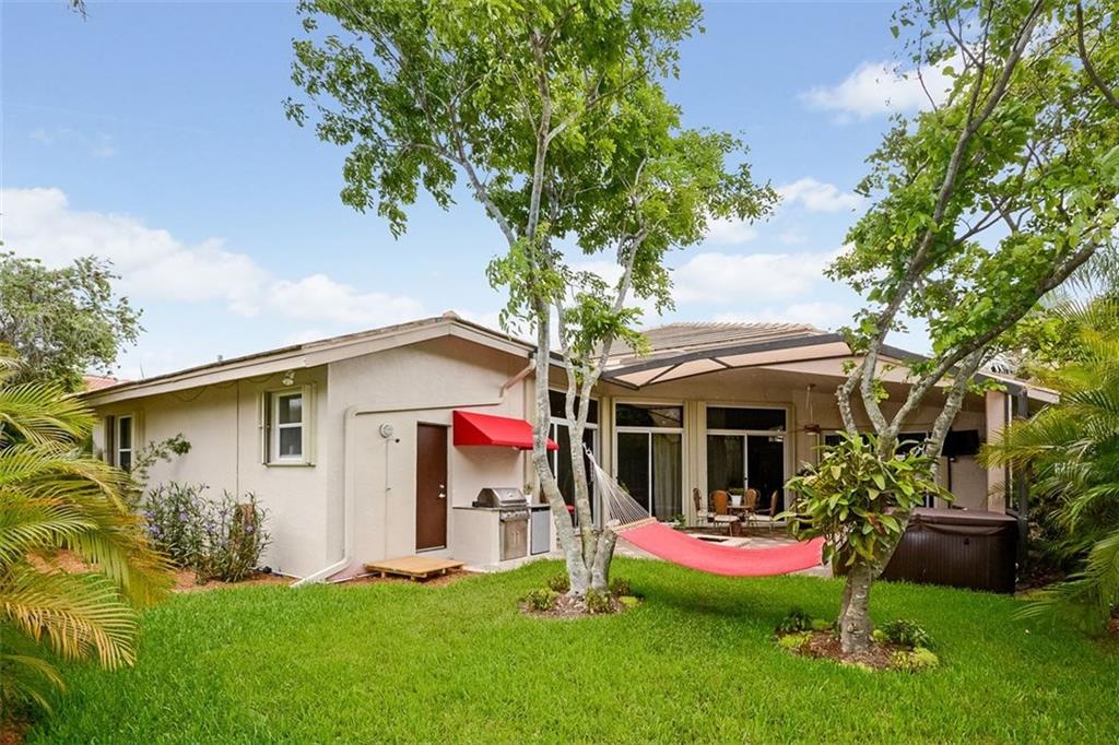 Beautifully landscaped corner lot located in The Islands. Exquisite touches, customized finishes, and meticulous details throughout this 4 bedroom 3 bathroom home. Fully upgraded with luxurious spa inspired bathrooms, granite kitchen with eat in breakfast nook, new hardwood floors and travertine tile. Features include crown molding, volume ceilings, accordion hurricane shutters, pavers. Private and spacious yard with room for a pool.