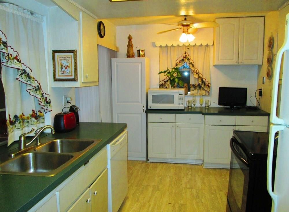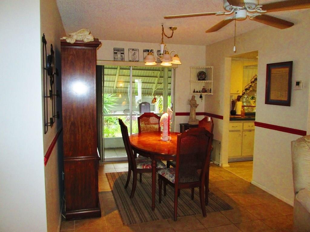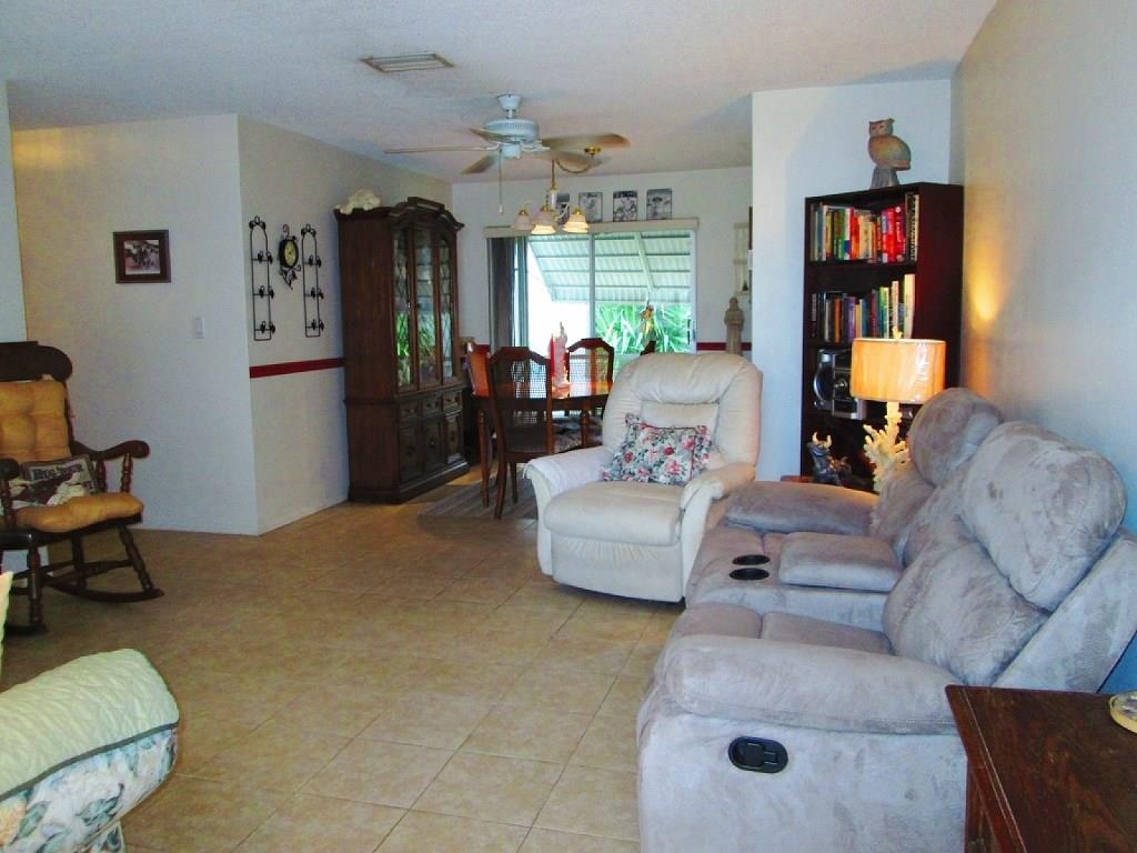 Wonderful Leisureville a 55+ club community! This garage Sovereign model is located on a less traveled street. Living areas are tiled throughout. The efficient kitchen w/ newer cabinets & glass top stove leads to in-house laundry room, then to garage. Newer Rheem A/C system, designer shower & upgraded vanity. Large screened back porch off the dining room & kitchen. Low HOA fee includes lawn cutting, water/sewer, roof/house coating/painting, 2 pools, clubhouses, courtesy bus & activities. NO LAND LEASE.