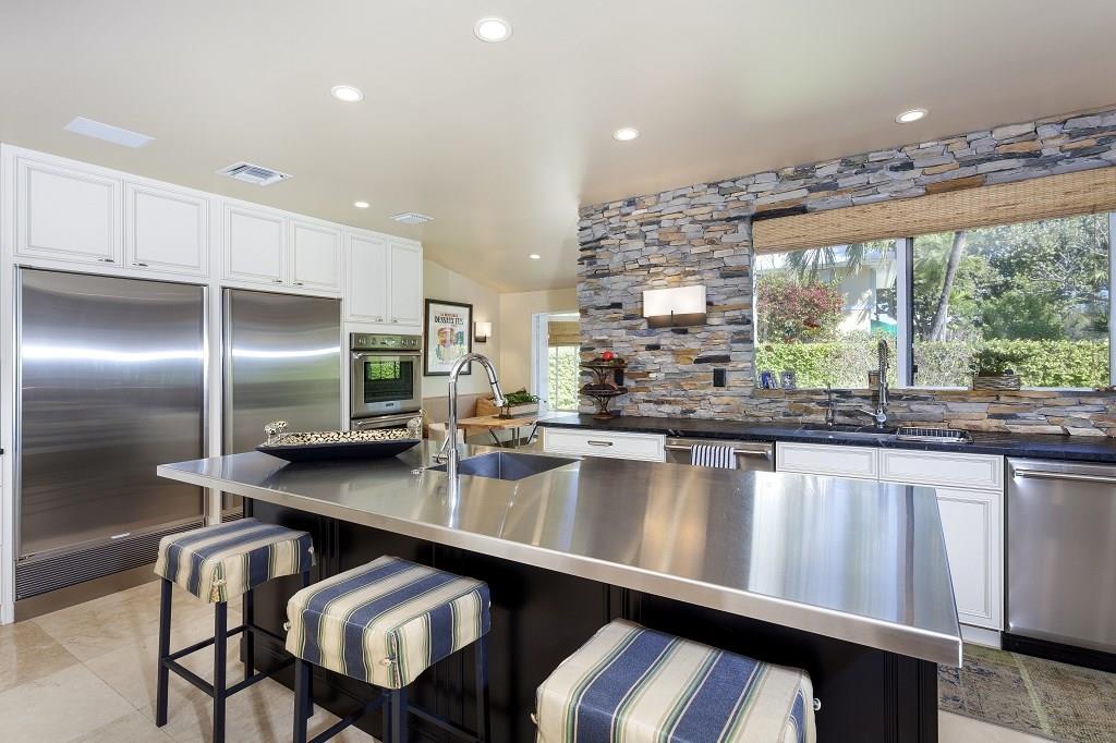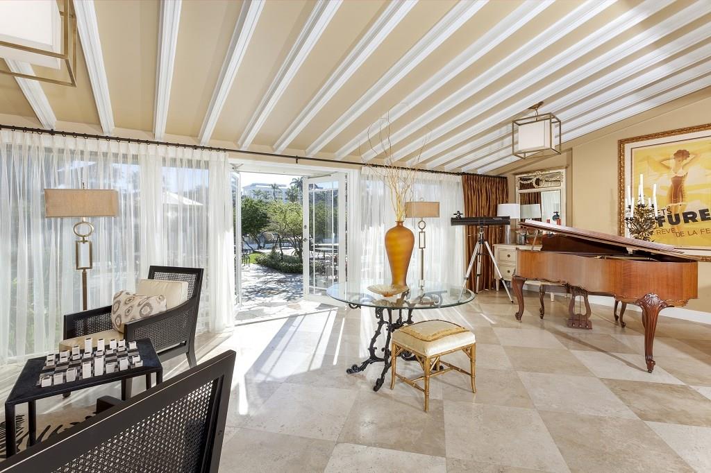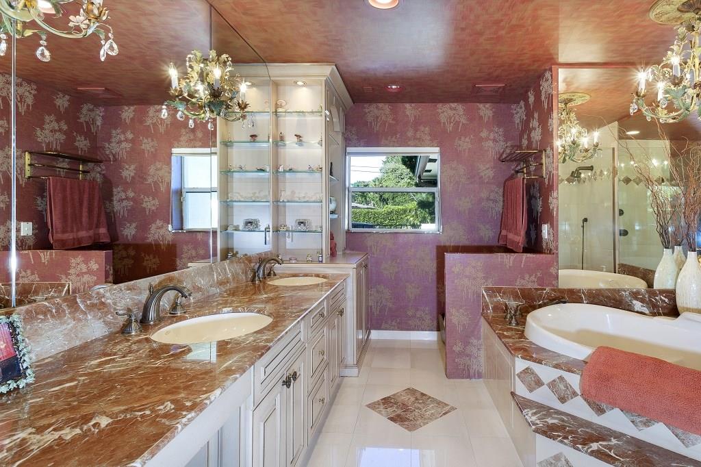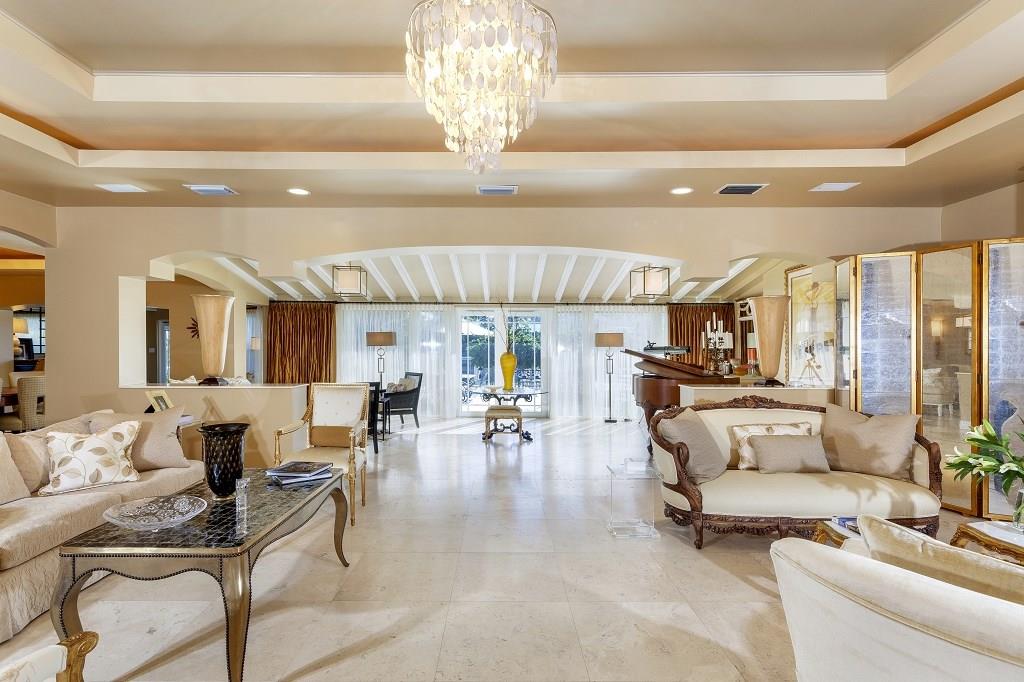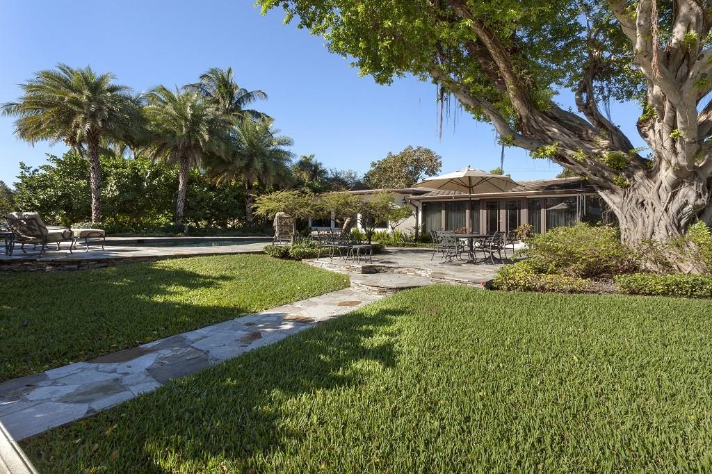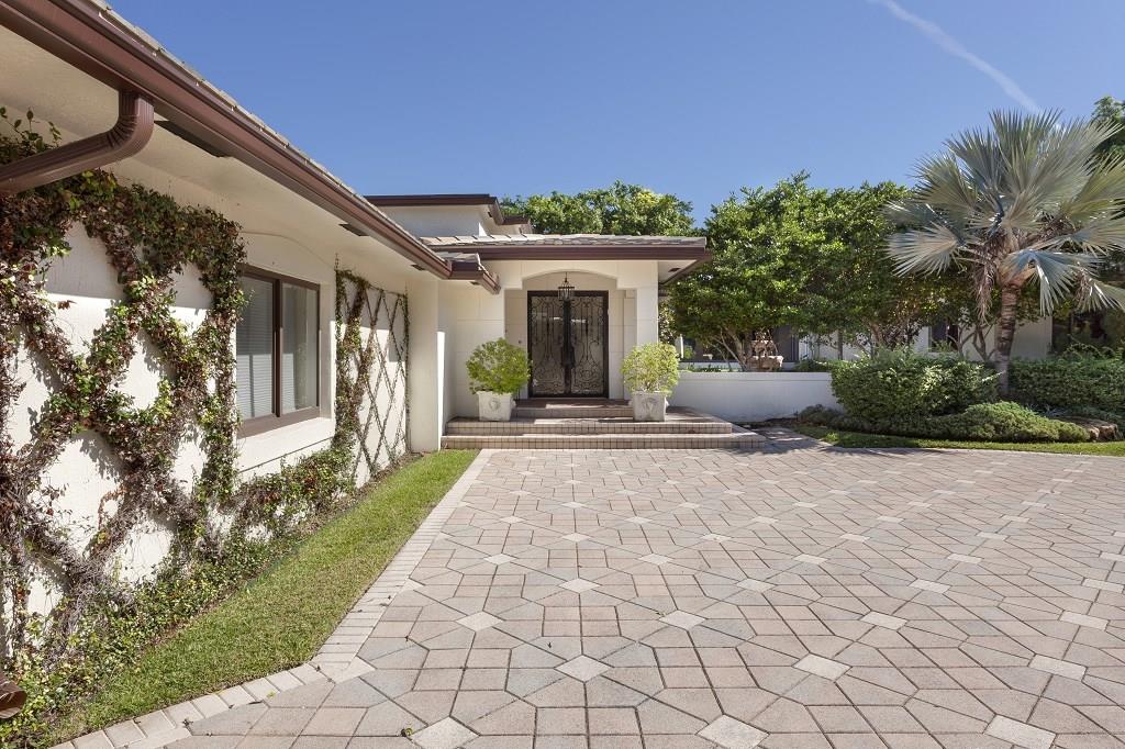 In prestigious gated Harbor Beach, this beautiful Mediterranean-inspired estate fronts 130± ft. on tranquil Lake Mayan and sits within walking distance of the private beach club and marina. On the lush, sprawling grounds with privacy hedges, the expansive lakefront pool patio gives a serene resort feel. For the boater, the dock has ocean access with two fixed bridges. The well-maintained residence includes a versatile double living room plus a large master suite in the triple-split layout.