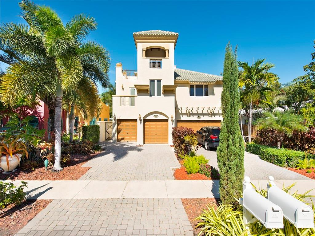 Beautiful corner private townhouse in Victoria Park. Light & Bright. Great open floor plan. Enjoy the large rooftop terrace with amazing views of downtown and east toward the beach. Tropical backyard with Jacuzzi and walled in for privacy. Pet friendly. 2 master suites, wood floors, natural gas cooking, 2 car garage & more. Great street and location. Walk to Las Olas, restaurants & shops. No HOA fees. A must see.