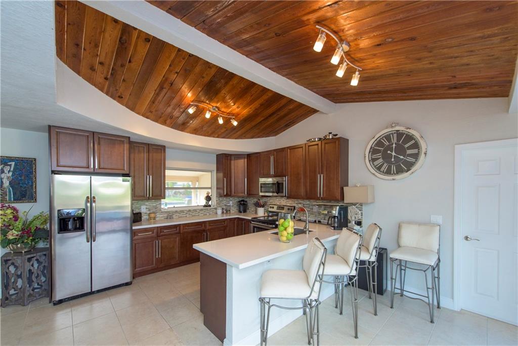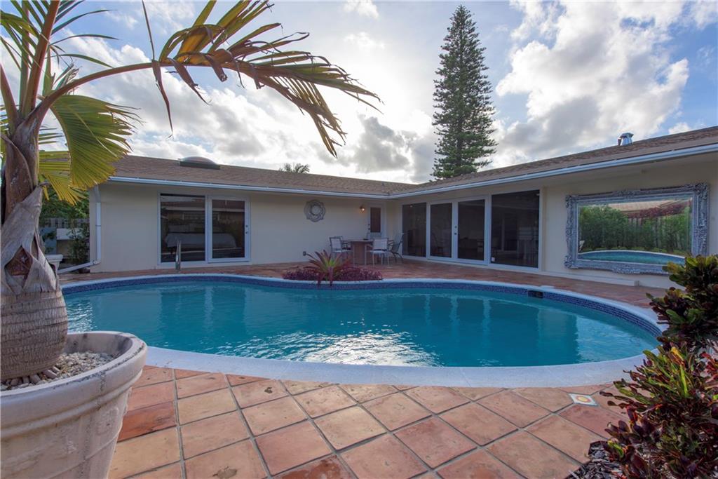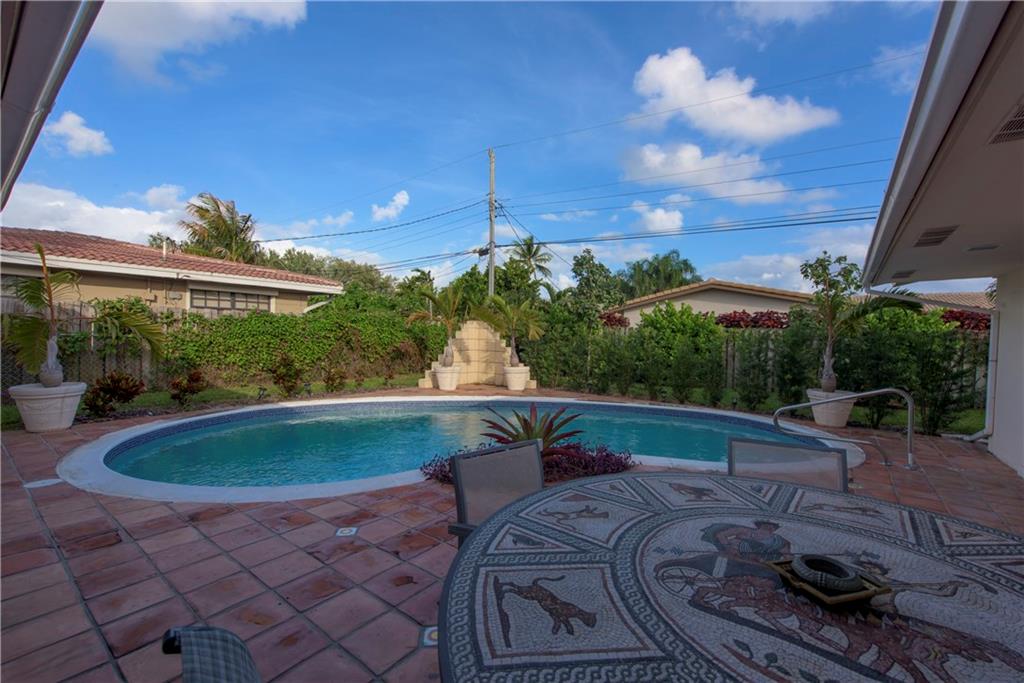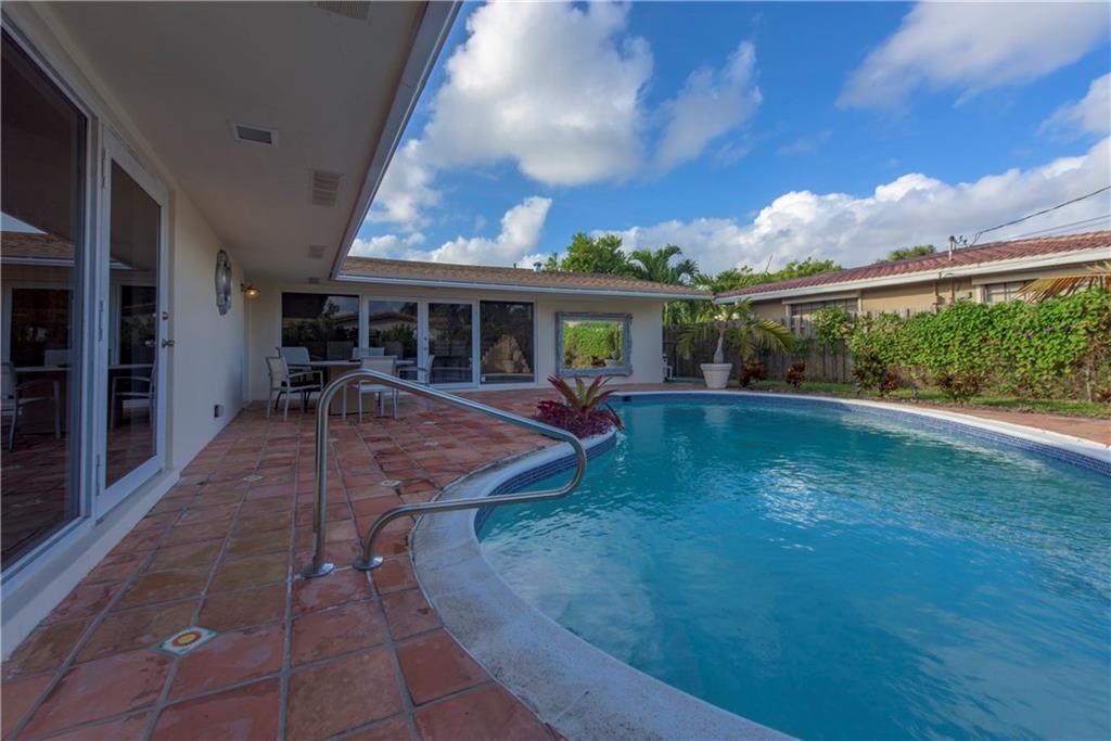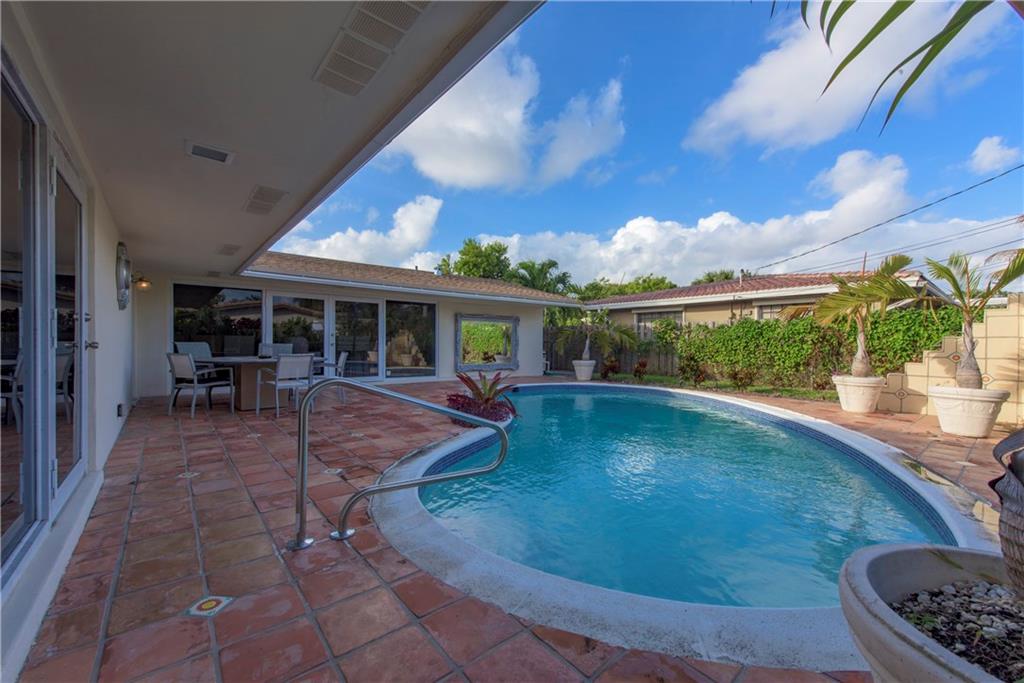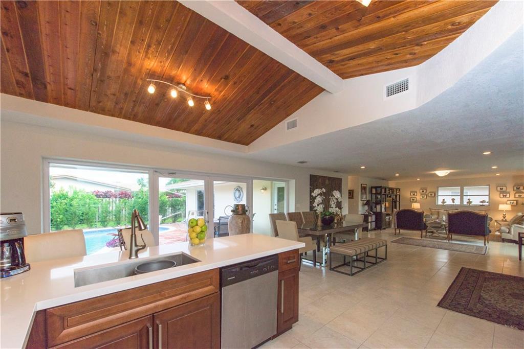 Outstanding architectural features and modern updates within this beautifully renovated pool home in wonderful Imperial Point. Kitchen, floors, roof, baths were all remodeled in 2015. Beautiful volume wood ceilings in the kitchen and master bedroom. The open floor plan has a fresh and modern style. Completely private and fenced back yard with sparkling free-form pool. Some hurricane impact windows and doors. Surrounded by more expensive properties on a desirable street. Near schools and shopping.