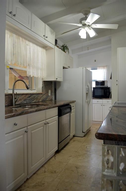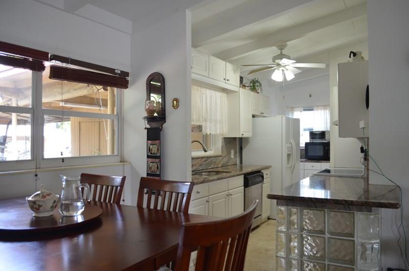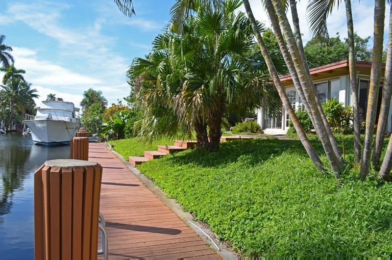 Unique waterfront home. One and a half lot with 90-foot dock, deep water, ocean access, no fixed bridges. Beautiful xeriscaped yard. Sprinkler system on well water. Room for a garage. Kitchen with granite tops. Remodeled baths. Ample storage space. Vaulted ceilings, travertine marble floors. Accordion hurricane shutters. Bedrooms have French doors with retractable screens overlooking canal. Dead end street makes for a quiet neighborhood. Centrally located near major highways, airport and downtown.
