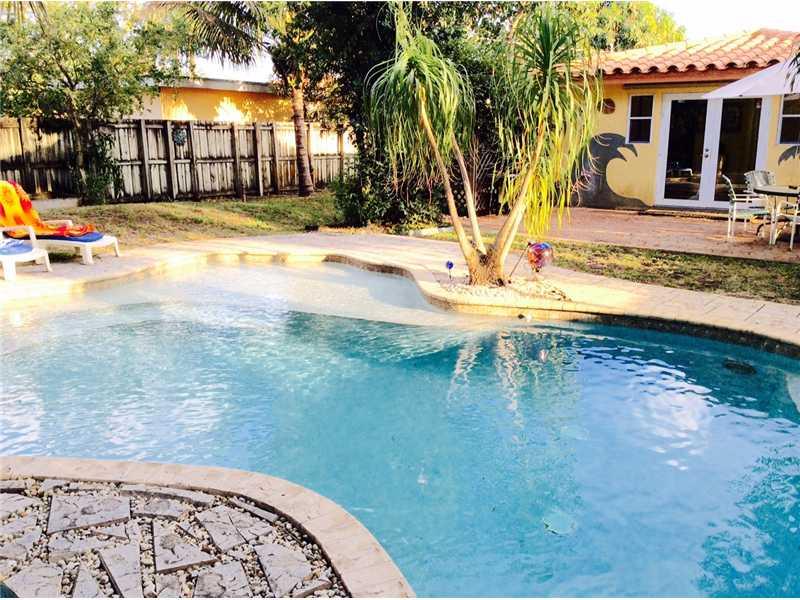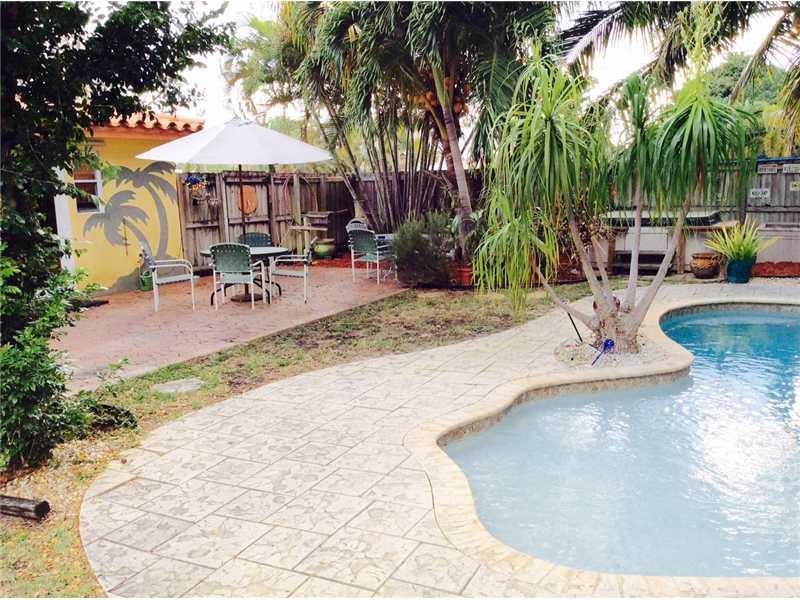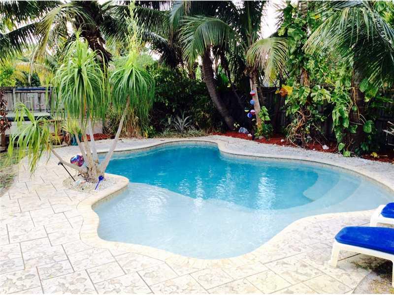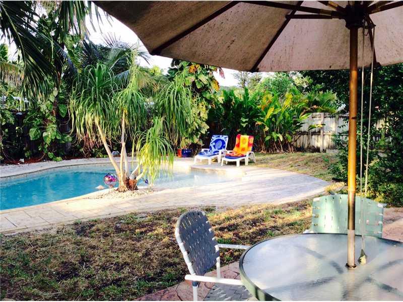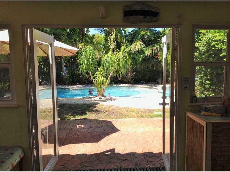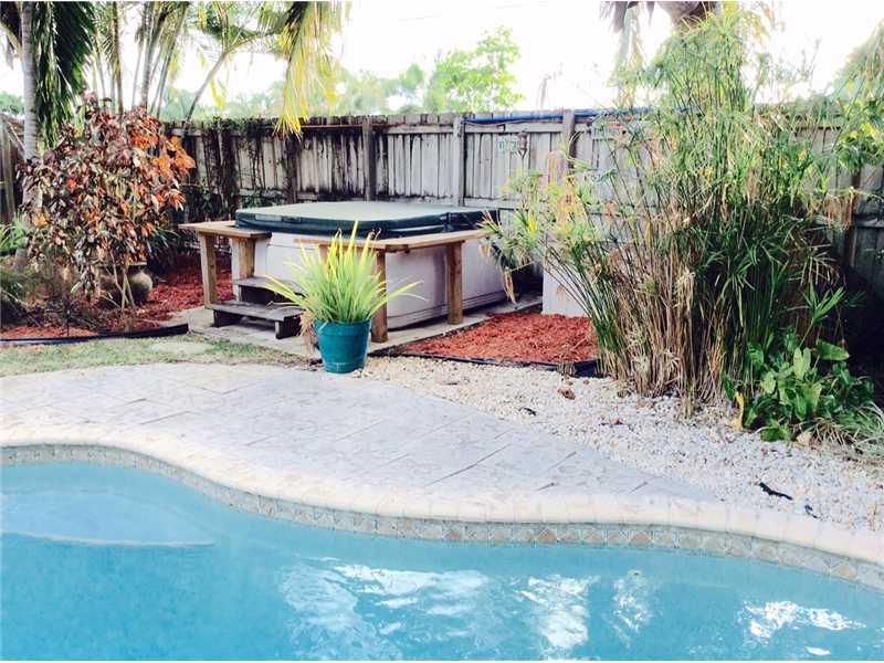 Inviting FL-style,lrgr than tax roll, corner Home. Airy LivRm, Open kitchen w/rm to expand. Sep.Rm ideal 4 Din/Ofc/Den/Playrm. Adjacent room houses lndry,pantry,cabana-like bath w/Frnch Doors opening to tropical paradise pool w/tanning ledge, Exotic yrd w/show-stopping greenery & fruit trees. Other Feat: Newer A/C, Tankless Water Htr, Salt Generator Pool, Hot Tub, House Alarm, Accordion Hurr. Shutters, New Windows, 1/2 of house, and Front Load W/D, well-water sprinkler syst.