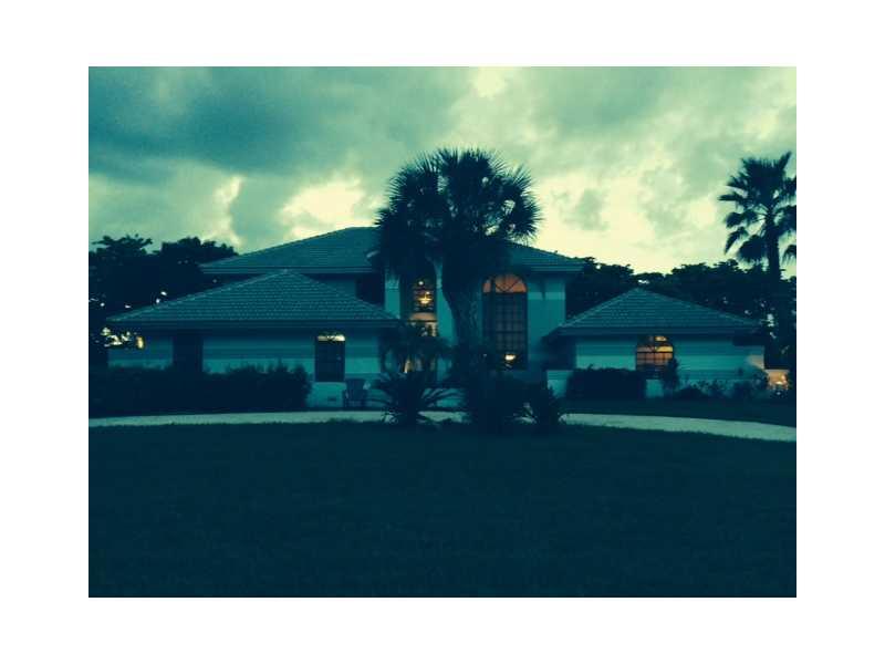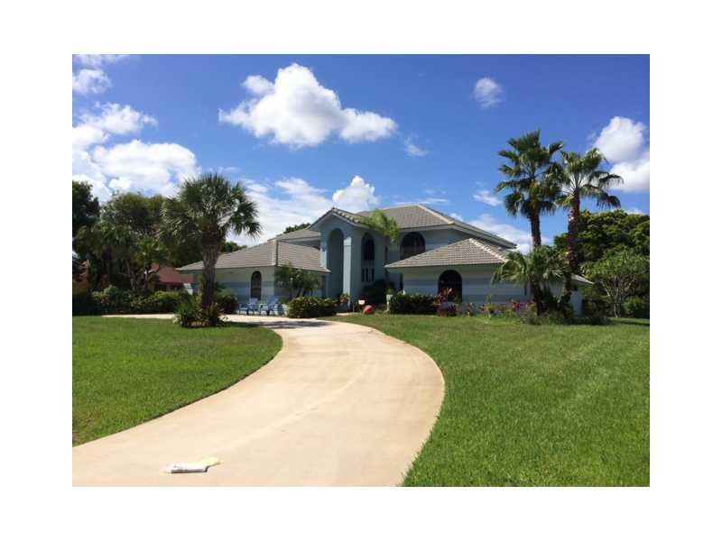 Back on the market!!! Spacious 2 story home on an acre lot with 3 car garage and circular driveway. Located on a canal with 150 ft water frontage. Inviting patio features French hurricane proof doors and opens to a kidney shaped pool and spa with a sum mer kitchen and basketball area. Large fenced yard. 17 ft. ceilings in living room & dining room. Master suite has been updated with laminate floor and new bathroom. 3 a/c units. Decorator ready!