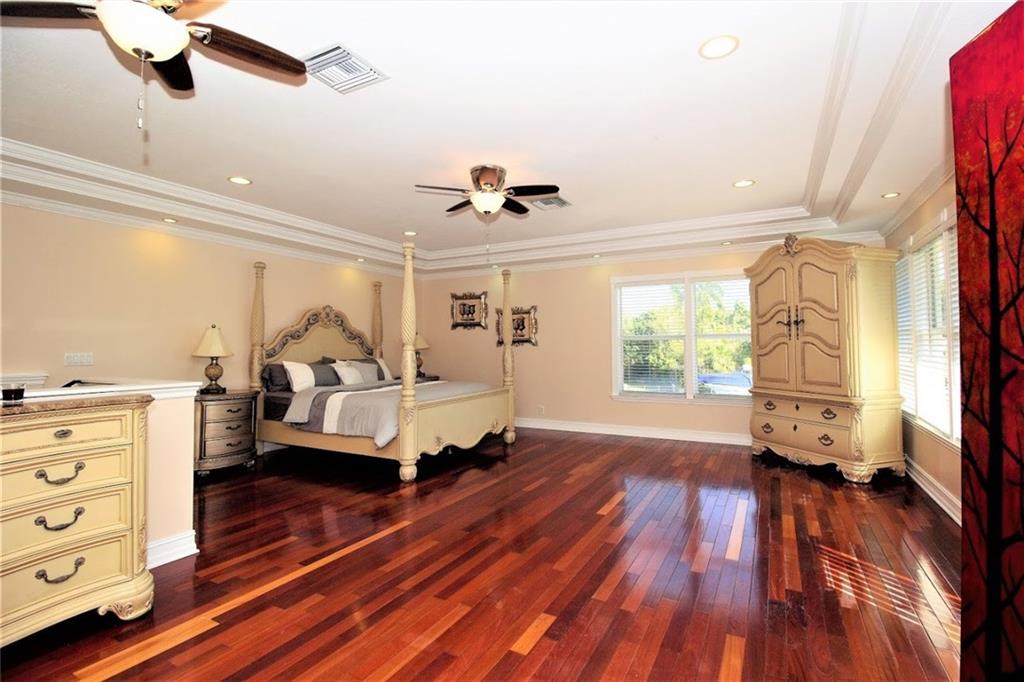 Boater's paradise! Newly renovated, spacious 2 story, 5 bedroom, 5 1/2 bath home on over 1/3 of an acre with 240' of water frontage with lighted dock, directly on Lake Santa Barbara. Unobstructed and panoramic views of the lake and Intracoastal. Large private master suite and open living area with water views. This home has it all with 3 car garage, hurricane impact windows throughout, circular drive, private cul de sac, bar and much more.