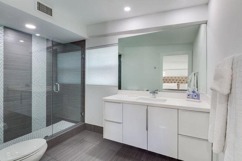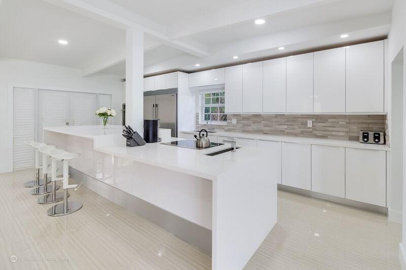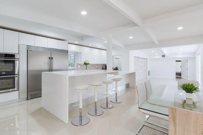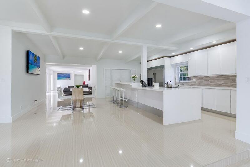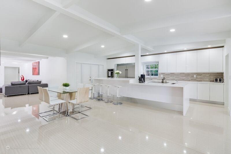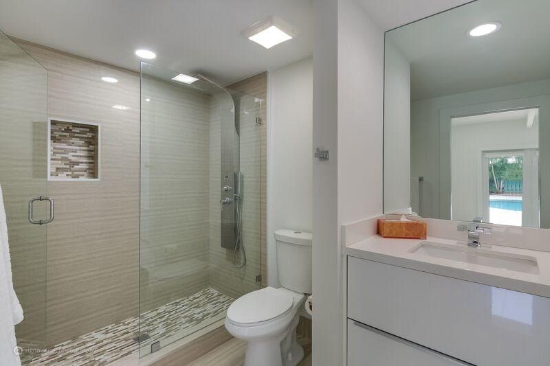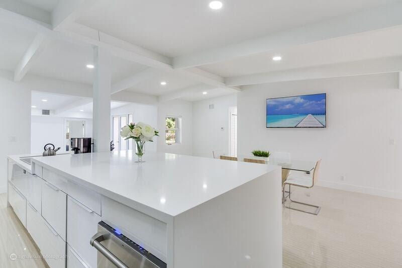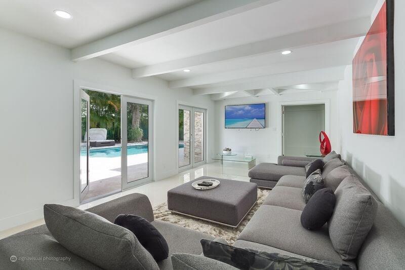 Incredible opportunity to own like new upscale, 4 bed, 5 bath Professionally Renovated Contemporary pool home in an amazing location just steps to the beach. Designer open concept, complete upscale kitchen, fully appointed with Frigidaire Professional Refrigerator, Electrolux double oven, GE stainless counter-top depth dishwasher and European professional grade cabinets. High Impact windows and doors, 24x48 porcelain tile, spectacular designer bathrooms, marble driveway & patio, cabana bath.