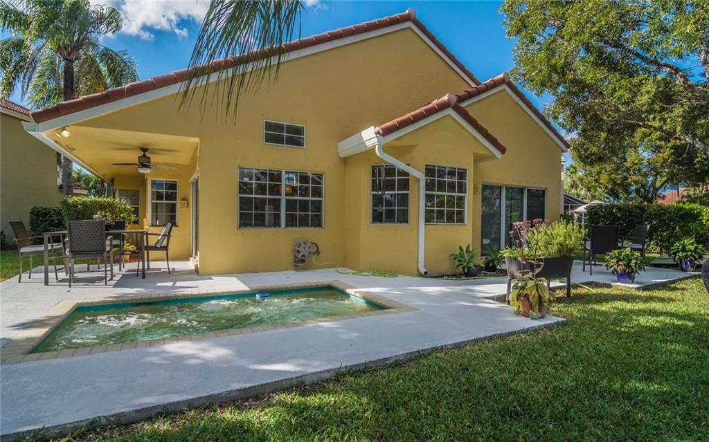 Breathtaking Views & Tropical Paradise from this 3/2 poolcuzzi home located on pie shaped cul de sac lot in gated community of Weston. Brand New Roof. Master Bath remodeled to perfection. Stainless steel appliances in Kitchen. Vaulted Ceilings. Just painted interior. Split Bedroom plan. Open floor plan. Patio is spacious with several entertaining areas to make memorable memories. Total privacy in backyard. Community has pool & basketball ball court. Walk to elementary school & Publix. A special place.