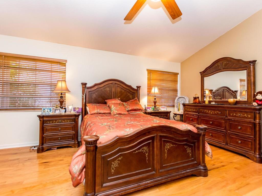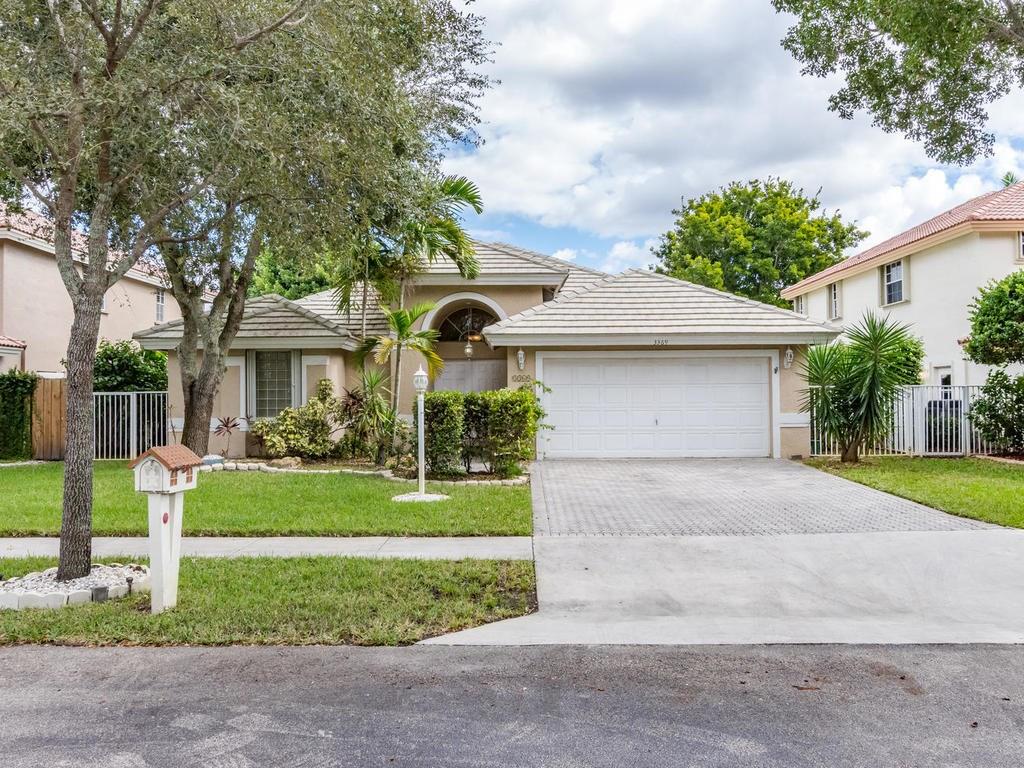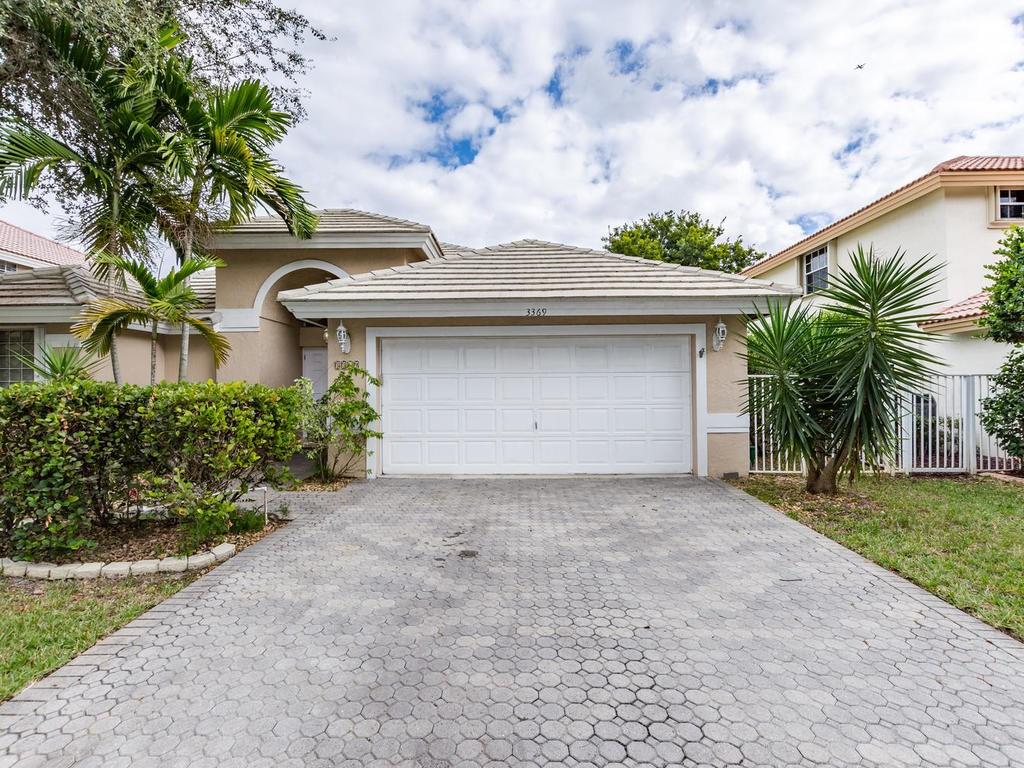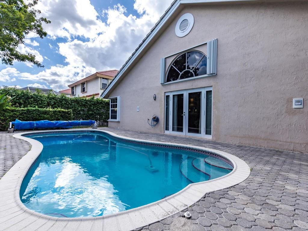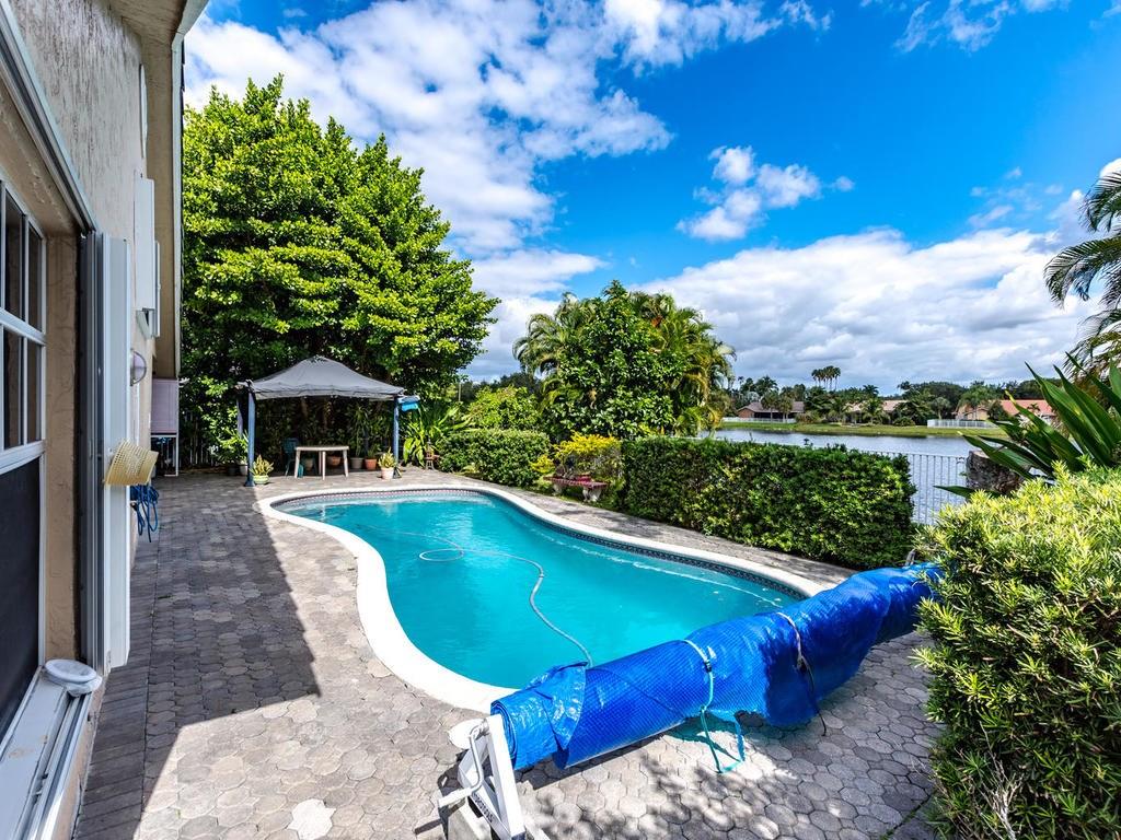 Beautiful 3/2 in Embassy Lakes Ventana ..French doors leading out to the pool and wide view of the lake! Solid oak wood floors throughout...Remodeled kitchen features European/Modern 42" laminate cabinets with pull out shelves and stainless steel appliances ..Updated 2nd bathroom. Master bath features dual sinks and a roman tub with jets.. High hats, custom lighting , Paver patio, fenced yard, accordian shutters, Cooper City "A" schools