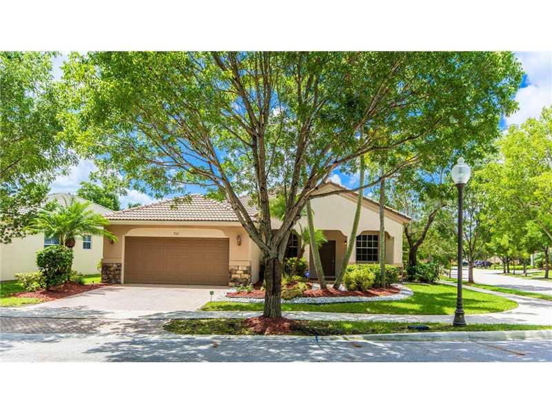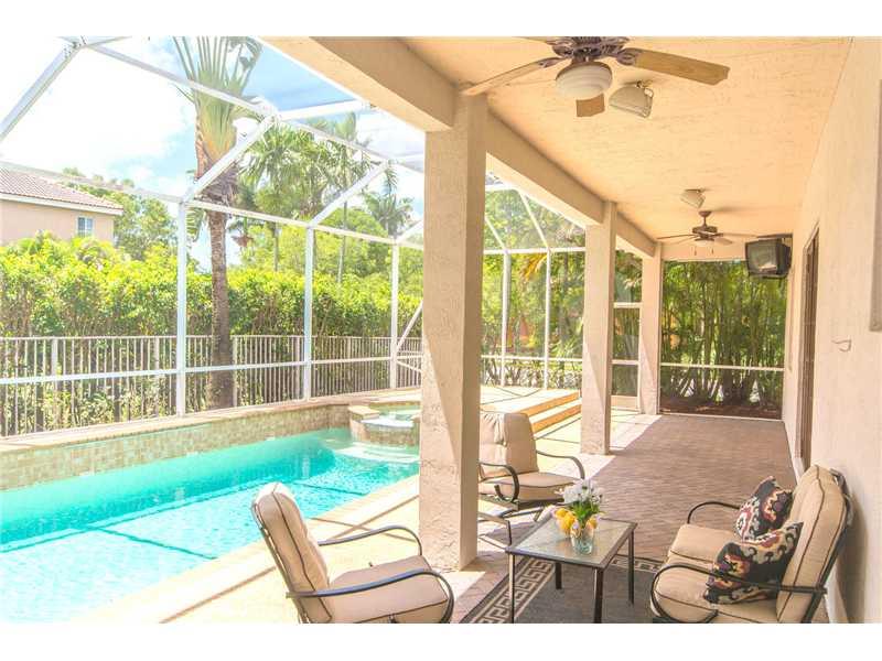 BACK ON MARKET!SHOWS LIKE MODEL! UPGRADED 4/2.5/2CG SINGLE STORY ON LARGE CORNER LOT IN GUARD-GATED WESTON! FRENCH DRS LEAD TO PVT COVERED BRICK PAVERED SCREEN PATIO W/LAP POOL & BIG RAISED SPA/DECK! STONE TILE ON DIAG W/NEW WOOD LAM FLRS IN LIV AREAS & B DRMS! 4TH BEDRM IS DEN W/FRENCH DRS. REMODELED MASTER BTH & KITCHEN W/CORION/42"WOOD CABS/CROWN MOLDING/STAINLESS APPL/SNACKBAR. GENEROUS BREAKFAST AREA. FRESHLY PAINTED/CALIF CLOSETS/HIGH BASEBOARDS/TOP OF LINE W/D! WORLD-CLASS CLUBHOUSE, A+ SCHOOLS!