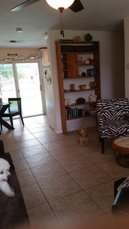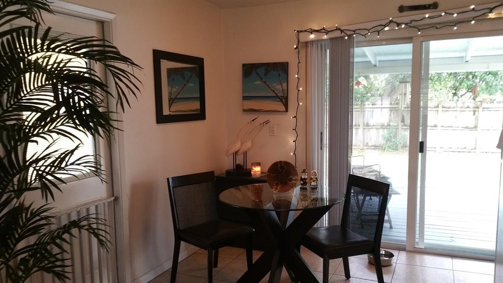 So Cute, kitchen with granite counter tops and newer cabinets. All tiled through out and covered patio overlooks good size yard. Newer vanity in bathroom. Roof was replaced in 2013 and a/c in 2012. Util.ity room outside near carport. Accordian shutters on whole house. Very nice home for 1st time homebuyer, or empty nesters.