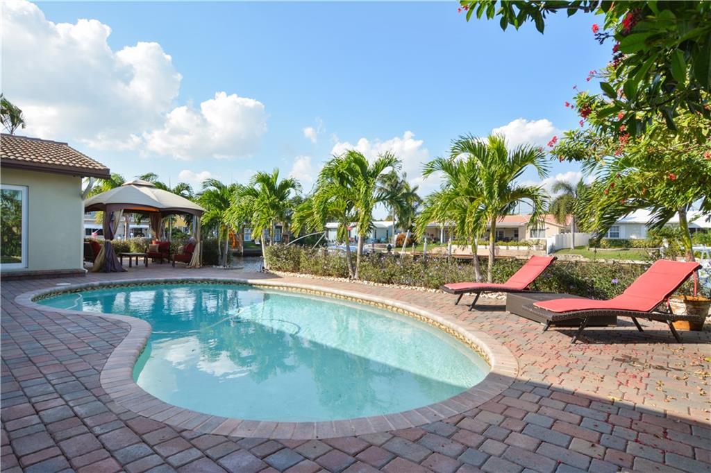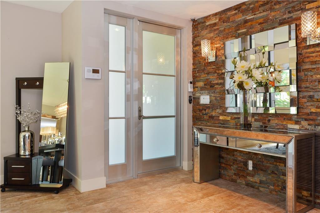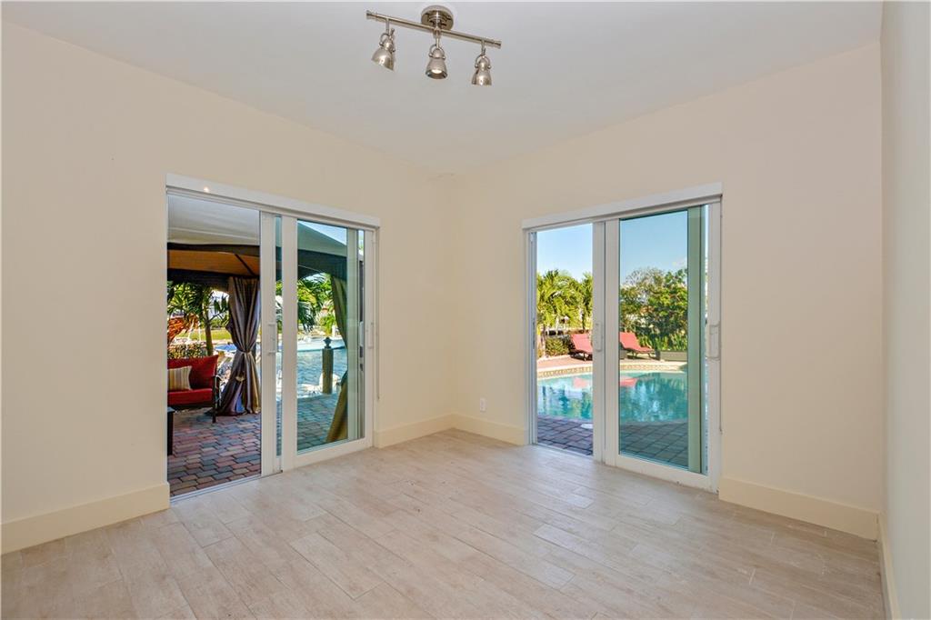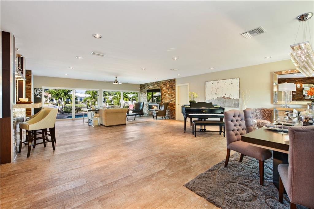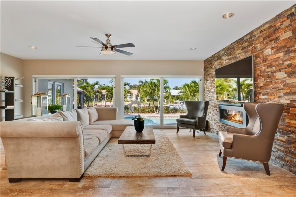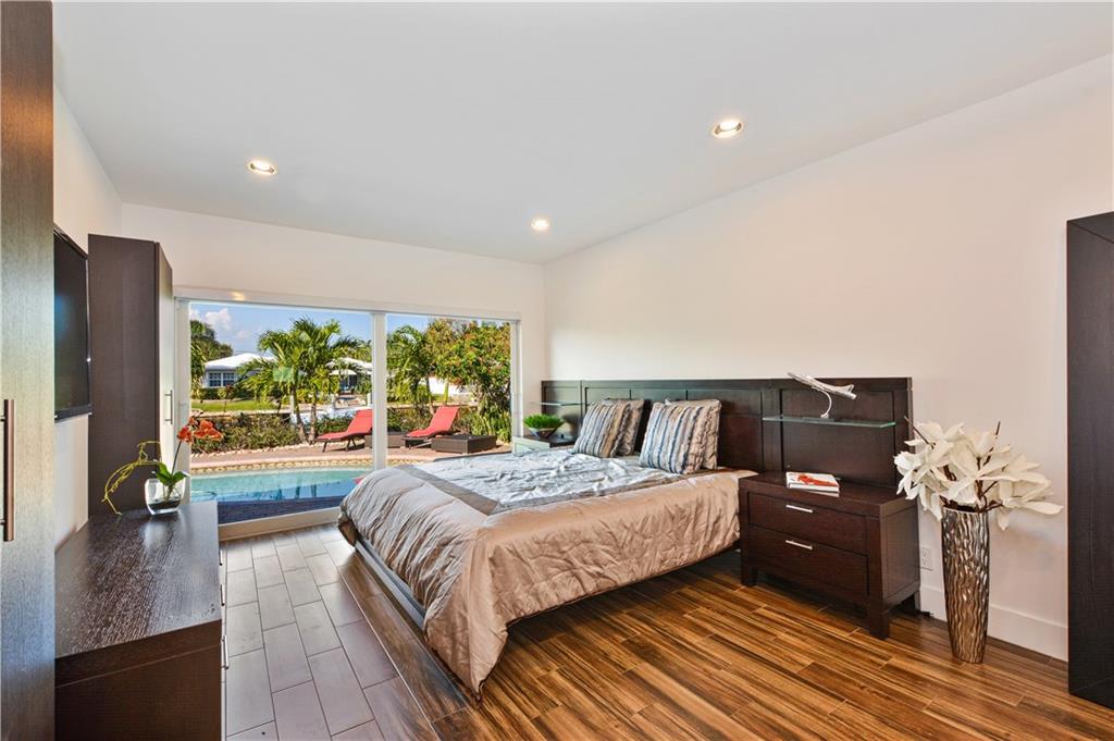 Modern Masterpiece--Beautifully renovated (New CO 2013) modern open floorplan with 80 ft on the water, featuring resort style pool with cabana in the esteemed section of Lake Estates, just adjacent to The Landings. The 4BR/3BA/2CG split floorplan home offers exquisite appointments including an open kitchen, granite, Viking appliances, modern design fireplace, impact glass, boat dock, minutes to the Intracoastal. Ready to move in quick close possible.