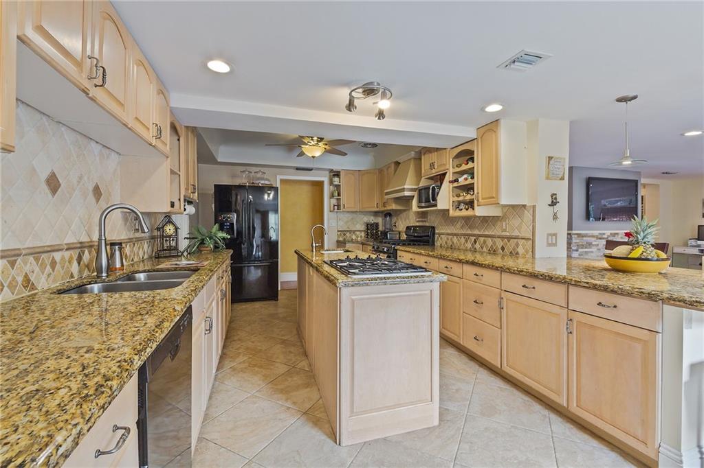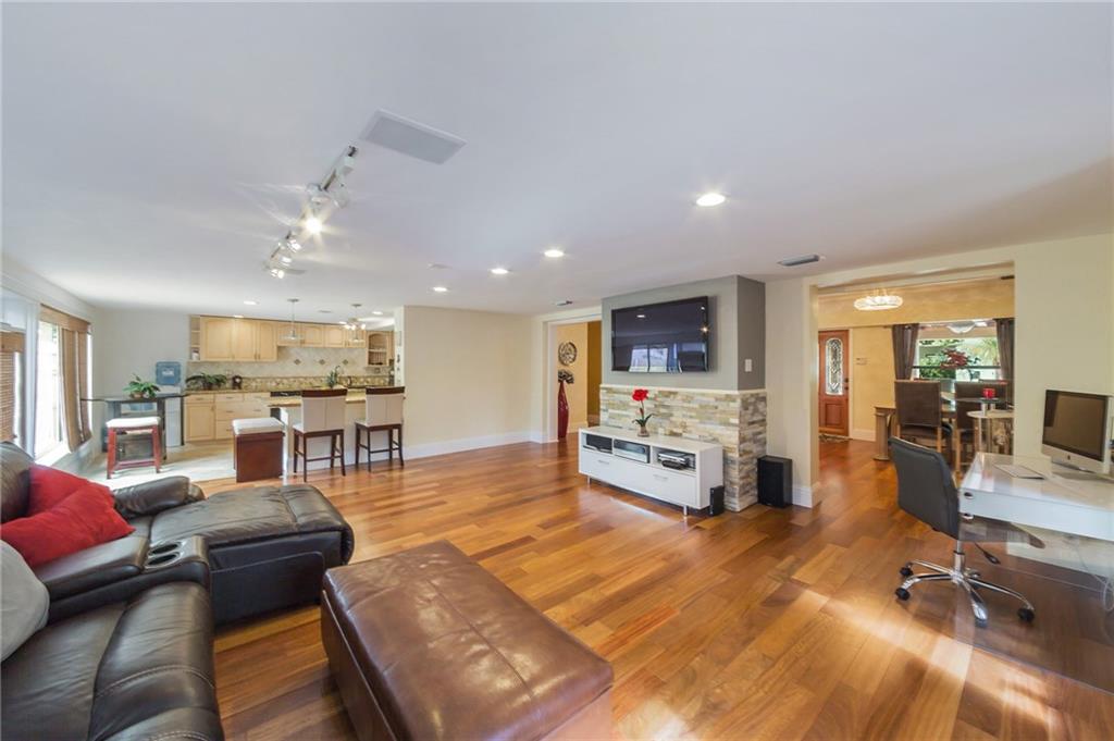 Close to beach, well maintained 4/3 with in-law/guest suite incl kitchenette, bathroom & large closet. 2016 updates-Brazilian teak wood floor, stone fireplace, LED lighting, surround sound, granite kitchen table & interior repainted. Gourmet kosher-kitchen with granite counters, gas range & cooktop, open plan to spacious family room perfect for entertaining. Master suite with separate shower, corner bath & walk-in custom closet. Formal living & dining area. Landscaped double corner lot & circular drive.