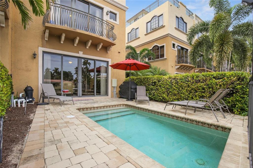 Enjoy fabulous views from this 3 bedroom, 3 and a half bath townhouse on Lake Santa Barbara. Many interior upgrades including high end wood and marble flooring, crown molding and chair rails throughout. Boat dock included in sale directly behind the home with room for up to a 35 foot boat with no fixed bridges to the ocean. Beautiful views from the living room, master bedroom and lovely roof top terrace. The home also has a private elevator and a private pool right out side your back door.