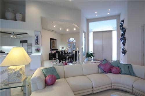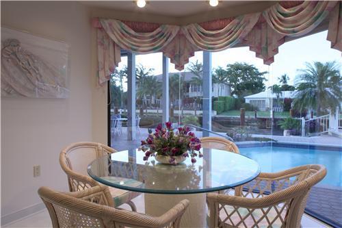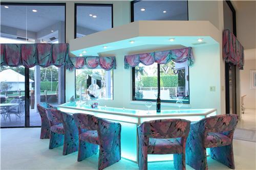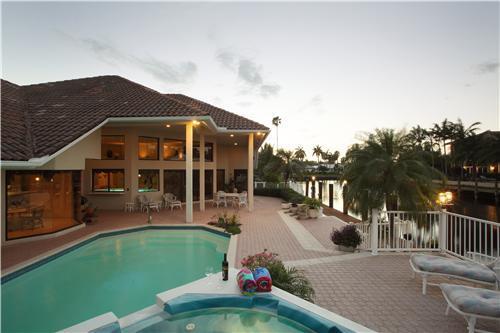 Light bright single story deepwater home with volume ceilings & four bedroom suites. Formal dining room, study / office, split bedroom plan, breakfast nook and water views from all main living areas. Generous covered outdoor living areas overlook Bay Colo ny estates. 100' of deepwater dockage. Hurricane protection.
