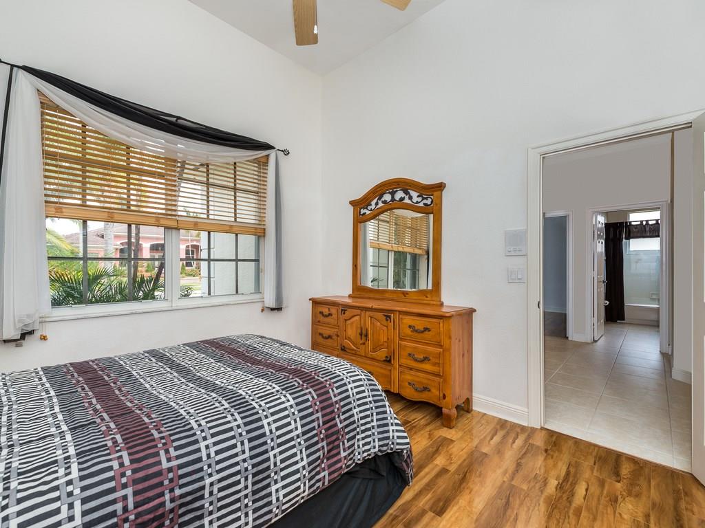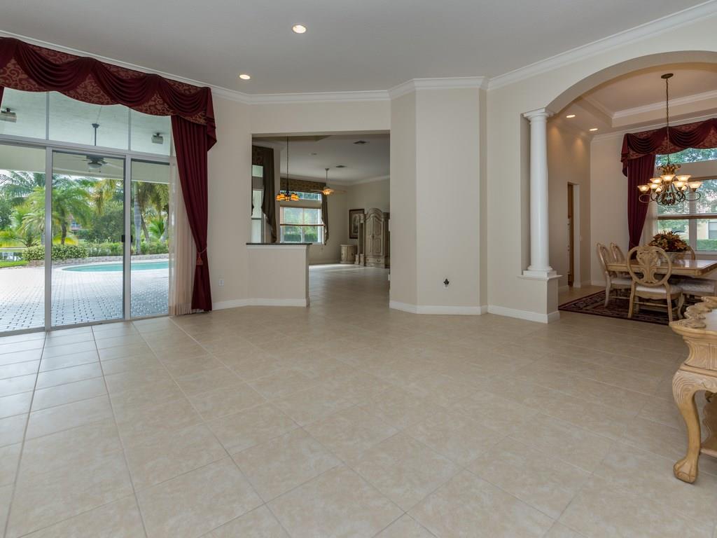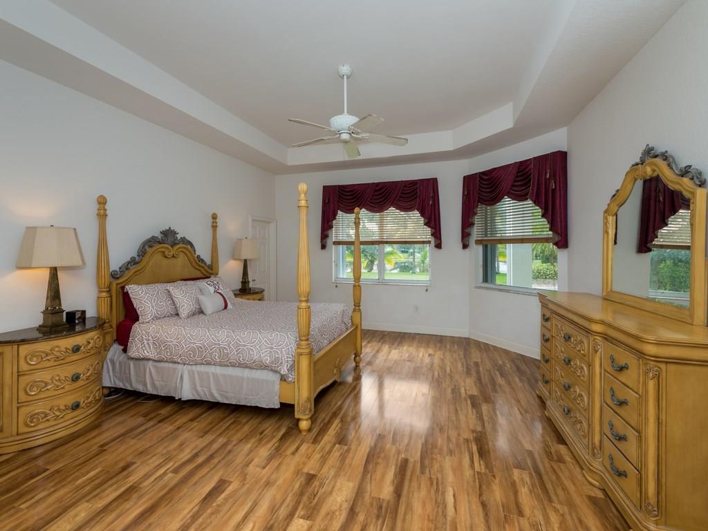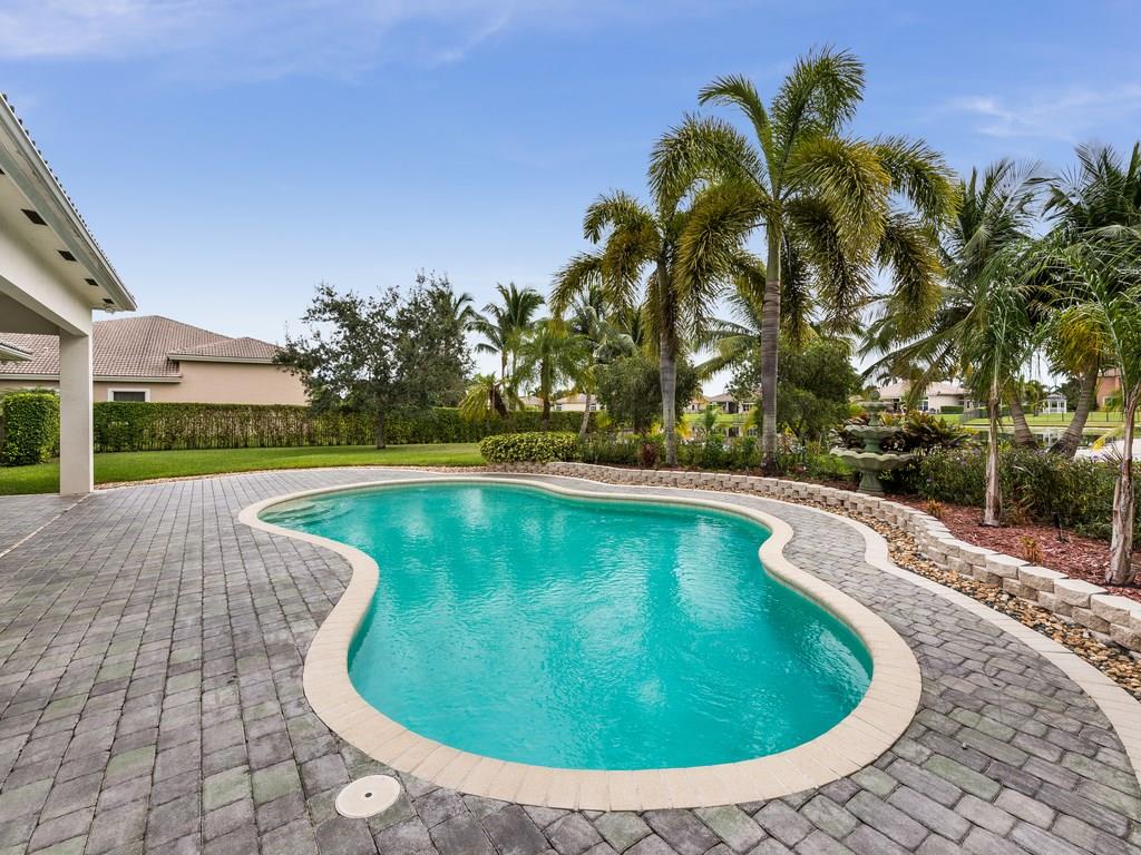Original owner relocating and motivated! Beautiful RIVERSTONE corner lot home sits on just over your average builder acre. This true 4 bedroom 3 Bath home built by G.L. Homes has a very spacious floor plan with volume ceilings, furnishings stay or go, buyer chooses. Waterfront lot, pool and a fabulous backyard. Upgraded brick paved circular driveway and entry way, three car garage, and accordion shutters! Reduced price, sellers will listen to all offers! Great opportunity for buyer! A must see!