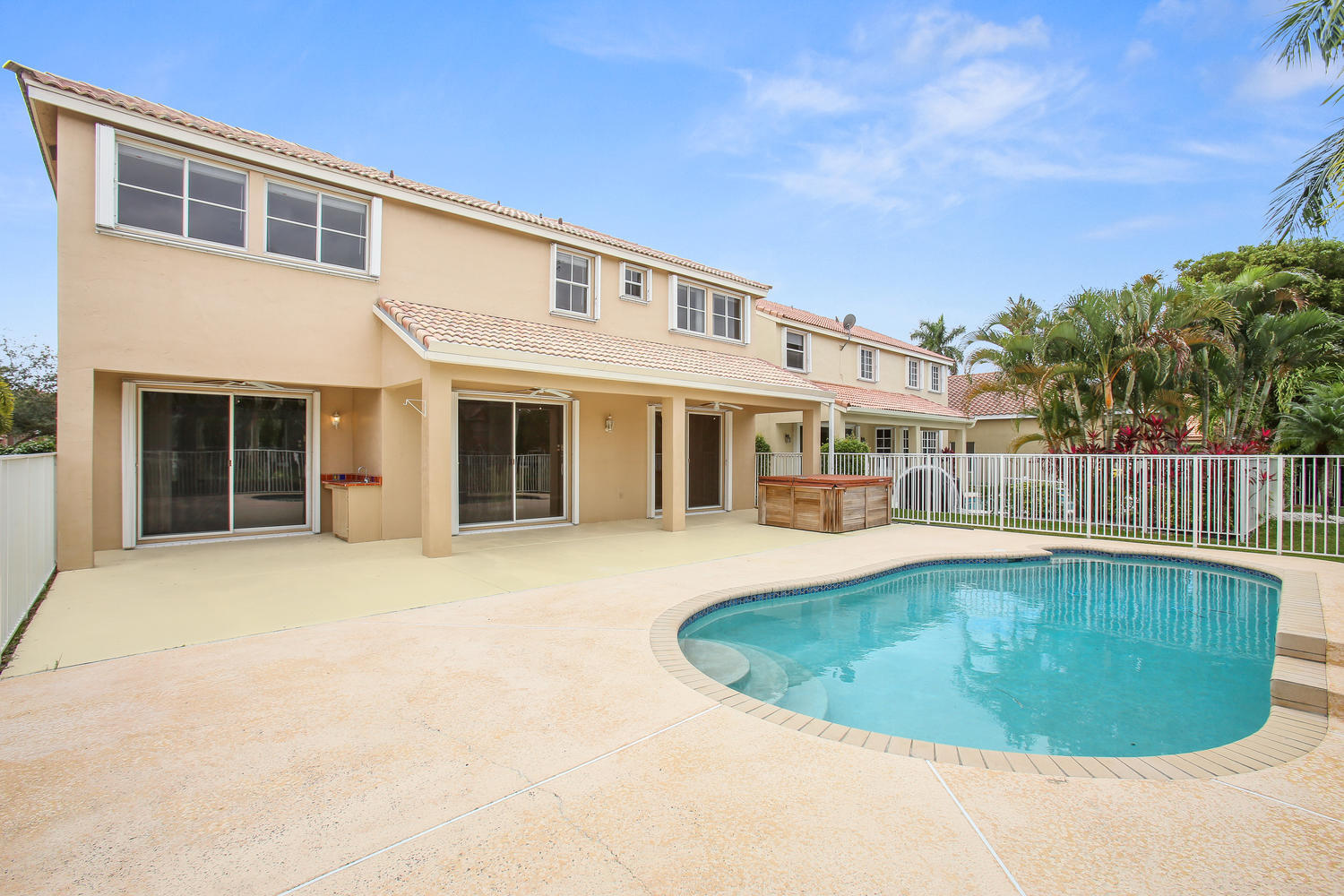 This gorgeous home is ready for a large family! Huge 5 bedroom 3 bathroom home with a large private pool & spacious patio! Perfect yard for entertaining! The owners expanded the original patio, added a Jacuzzi and also an outdoor kitchen area.Inside this fabulous home you will find a huge renovated kitchen with Maple cabinets that opens to the family room with a beautiful views of the water. Service America contract for appliances, plumbing, New AC. New Washer/Dryer. Upgraded Plumbing. Two spacious master suites! One on ground level and the other on the second floor. This home is super spacious and has been cared for meticulously by the original owners. Home is Located in the Beautiful Falls Community That boasts A Rated schools!Must