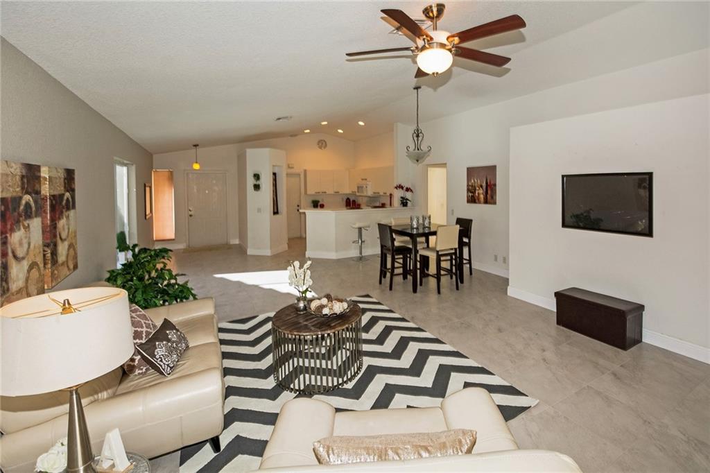 Welcome Home! Spacious, open floor plan. Located across from large, passive park. MOVE-IN READY! The living area has NEW porcelain tile floors. NEW Carpet in the bedrooms. White kitchen cabinets, stainless handles. Private, Master bedroom in back of house with sliding glass door to screened patio. Neutral colors, freshly painted interior. Come enjoy the Savanna lifestyle with 3 Community Pools including Water Slide, Mini Golf, Soccer Fields. Walk to Gator Run Elementary. Come see!
