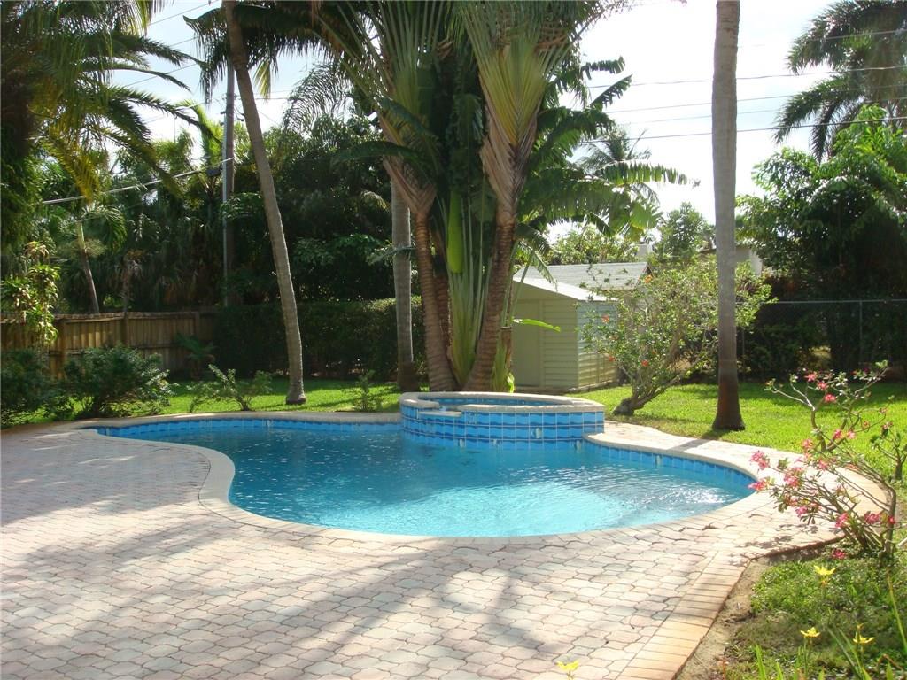 MOVE-IN condition, very charming & a motivated Seller. Newer S-tile roof, PGT impact windows/shutters (Seller has windstorm insurance discount), remodeled kitchen w/white cabinets, granite counters, marble backsplash. Heated pool & spa, large pavered patio, beautiful landscaping & mature palms - this is a GORGEOUS backyard. Storage shed. Sprinkler system on well. Indoor laundry room, tankless hot water, alarm & more. Tile & wood floors, fireplace. 2 bed 2 bath w/3rd bed/den. Quiet street with lovely homes