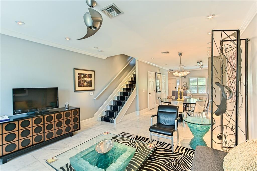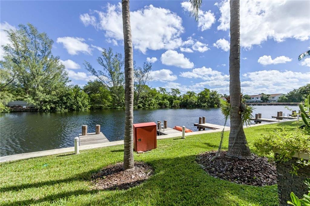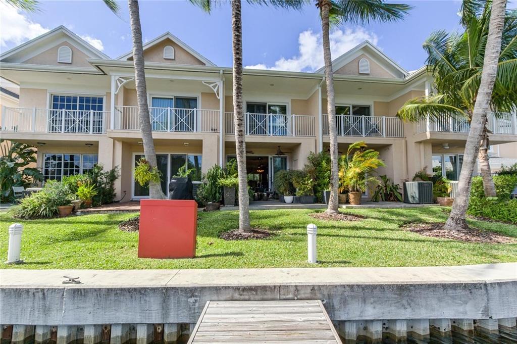 Uber sophisticated modern waterfront townhome! Nothing to do here, all upgraded -- just relax as you sit on your patio and watch the river go by, or go out on your boat from your own dock. Open beautiful kitchen with SS Viking appliances, handsome walnut bar/buffet, thermal impact windows and plantation shutters. Master bath shower has thermostatic valves & dual sinks. Master bedroom with vaulted ceiling, walk in closet, & balcony overlooking the water. Can rent out 3x/yr with 30 day minimum stay.