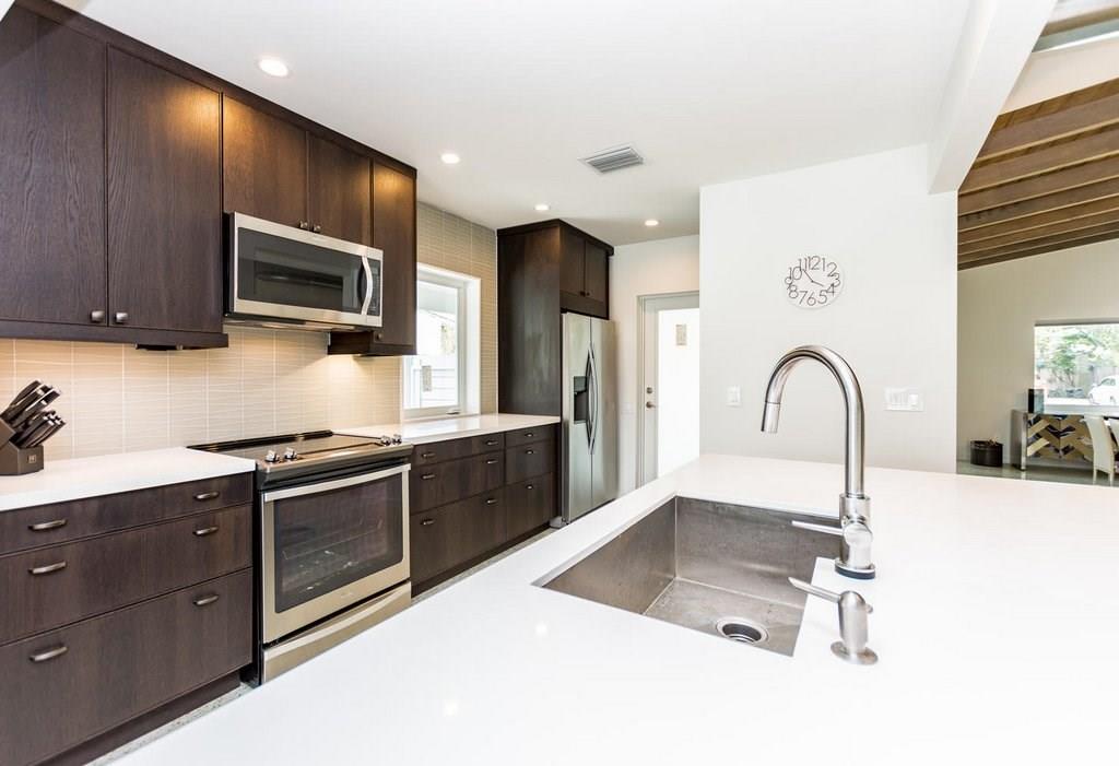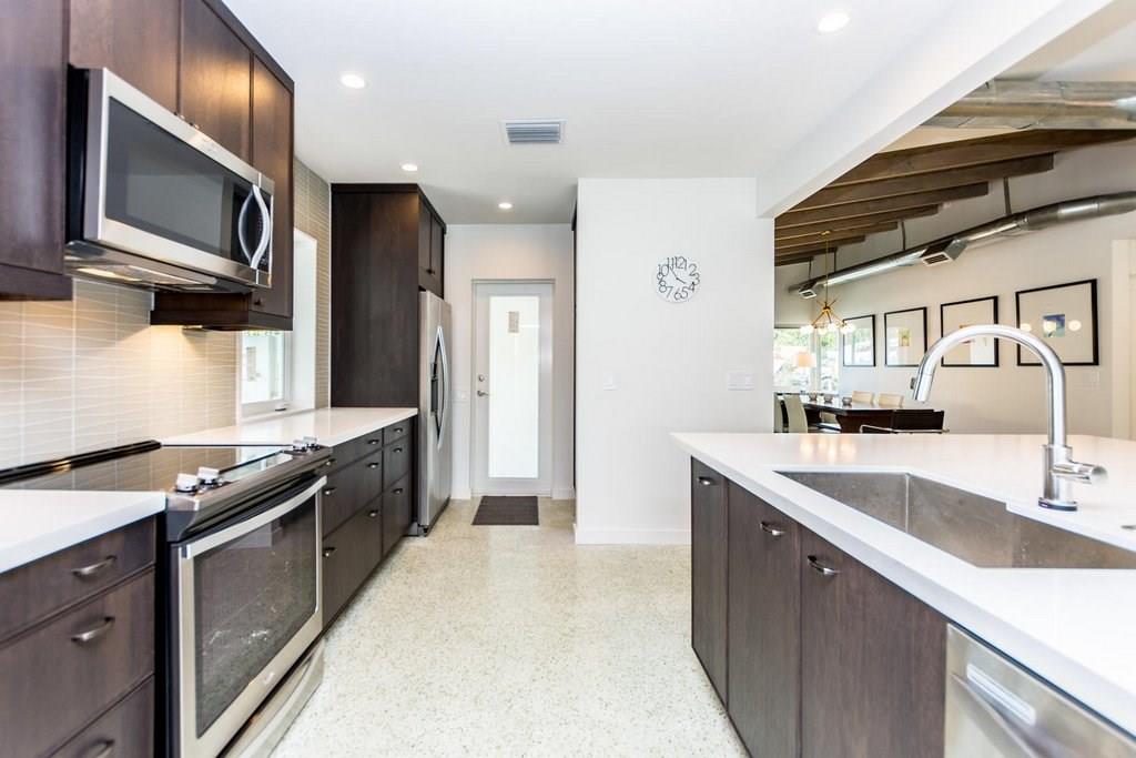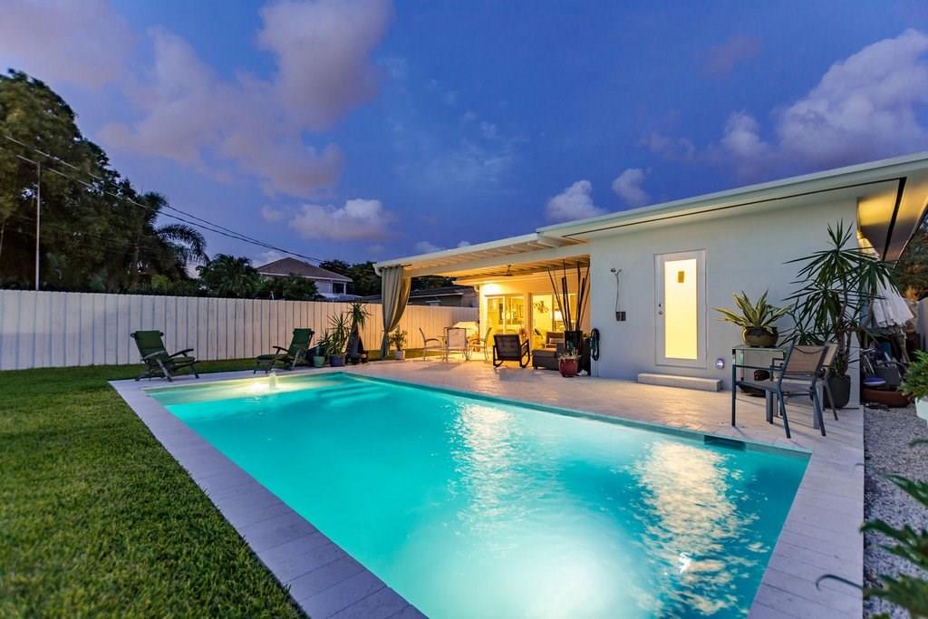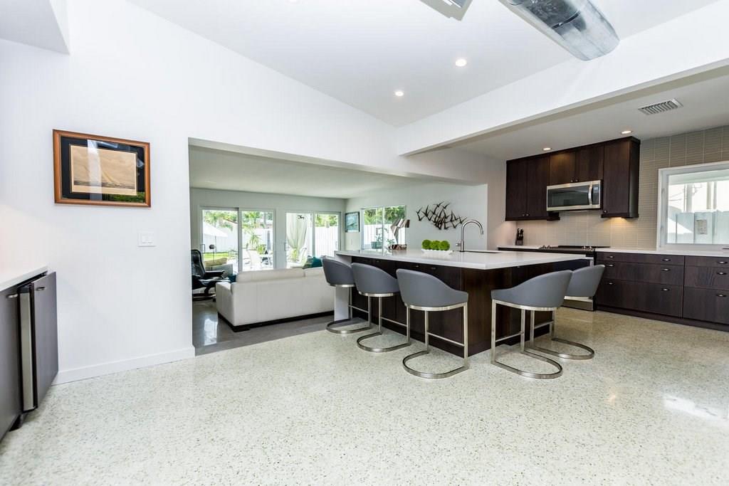 IMPRESSIVE MID CENTURY MODERN GEM! ATTENTION TO DETAIL ABOUNDS IN THIS COMPLETELY RENOVATED HOME...LET'S START WITH ALL NEW, KITCHEN, HURRICANE IMPACT WINDOWS AND DOORS, BATHS, ELECTRICAL, LIGHTING, BRAND NEW SALT WATER POOL AND TRAVERTINE DECKING...ALMOST TOO MUCH TO LIST..VAULTED CEILING WITH EXPOSED NEW A/C DUCTWORK, RESTORED TERRAZZO FLOORS!!! SHARP 40' EBONY CABINETS TOPPED WITH WHITE QUARTZ COUNTER TOPS, GLASS BACKSPLASH, AND UNDER CABINET LIGHTING...THE MASTER BATH WILL SELL THE HOUSE ALONE! WOW!!