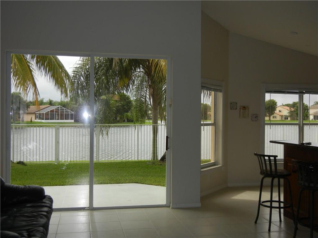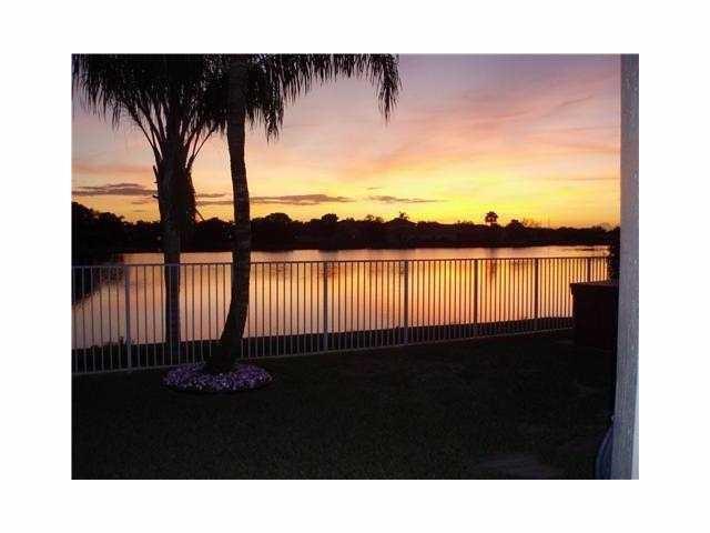 Enjoy the sunsets from this lake front home located in the guard gated community of Emerald Estates. This spacious 3 bedroom home features private lake views, vaulted ceilings, beautiful kitchen and master bathroom with separate shower, roman tub and dual sinks. The A/C unit is only 4 years old. Low HOA fee includes community pool, exercise room, cable, lawn care, and security. This Weston home has it all; close to great schools, restaurants, Publix and shopping. Easy access to I-75 and other major roads.