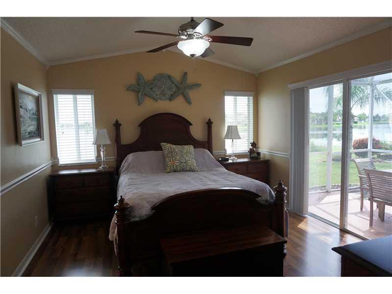 This is a Beauty with a stunning southeast lake view. View the lake from the great room, kitchen and master bedroom. Master bathroom has been remodeled. Master closet with customized built-ins. Home is immaculate. Kitchen with 42 inch cabinets and breakfa st bar. 2nd bedroom does not have a closet, modified when built to make living area larger. AC & Hot water heater are almost new. Screened patio for your enjoyment of the fabulous view. Great proximity to highways, stores, places of worship & restaurants.