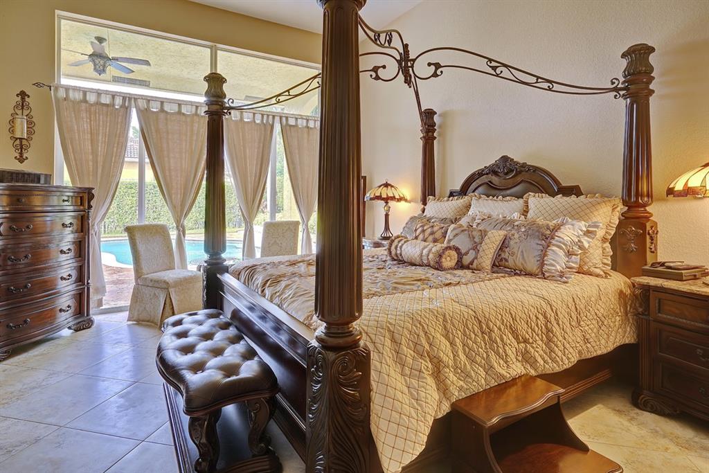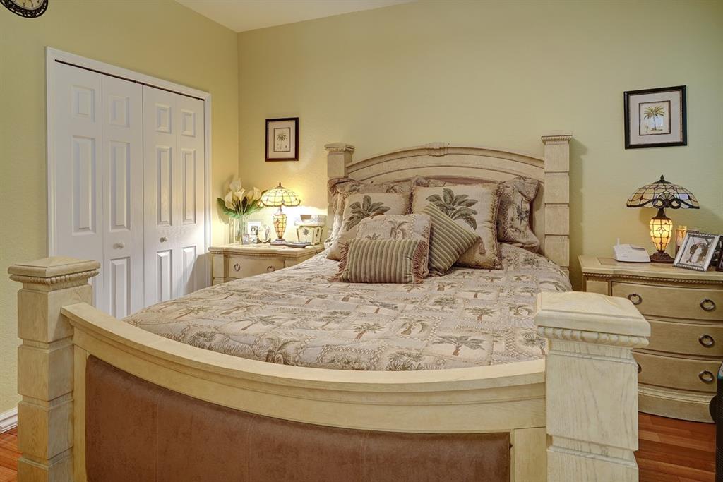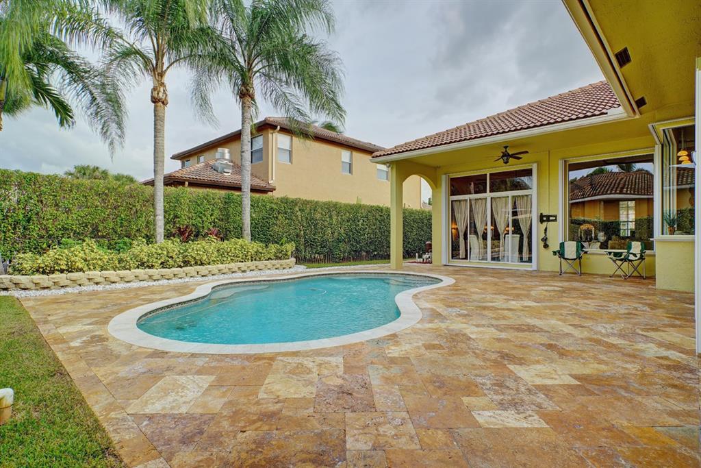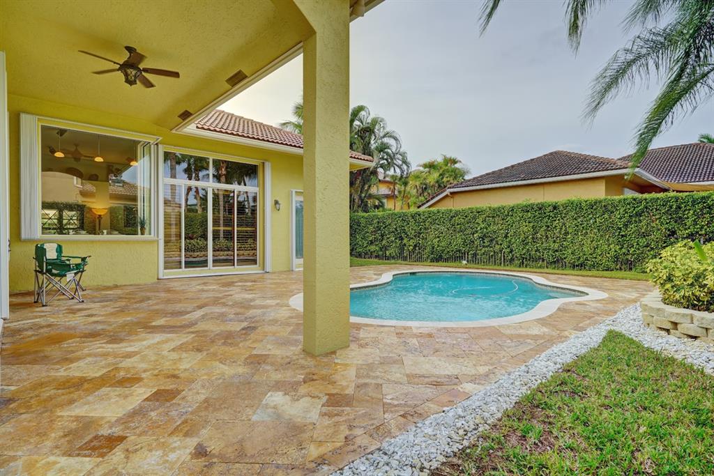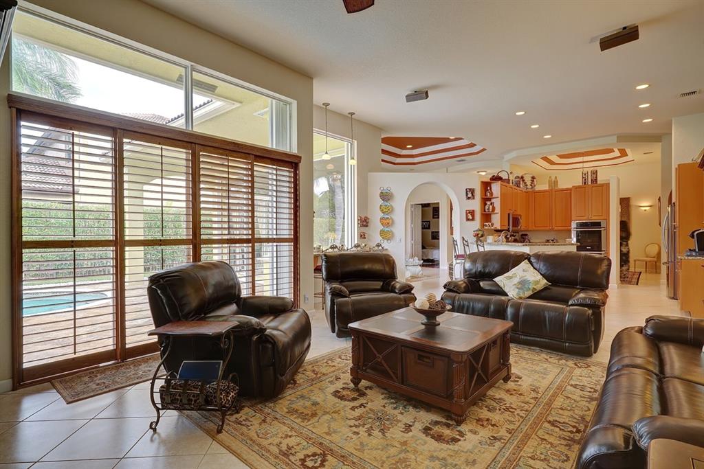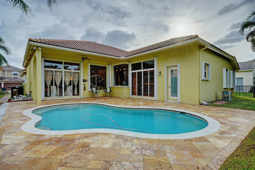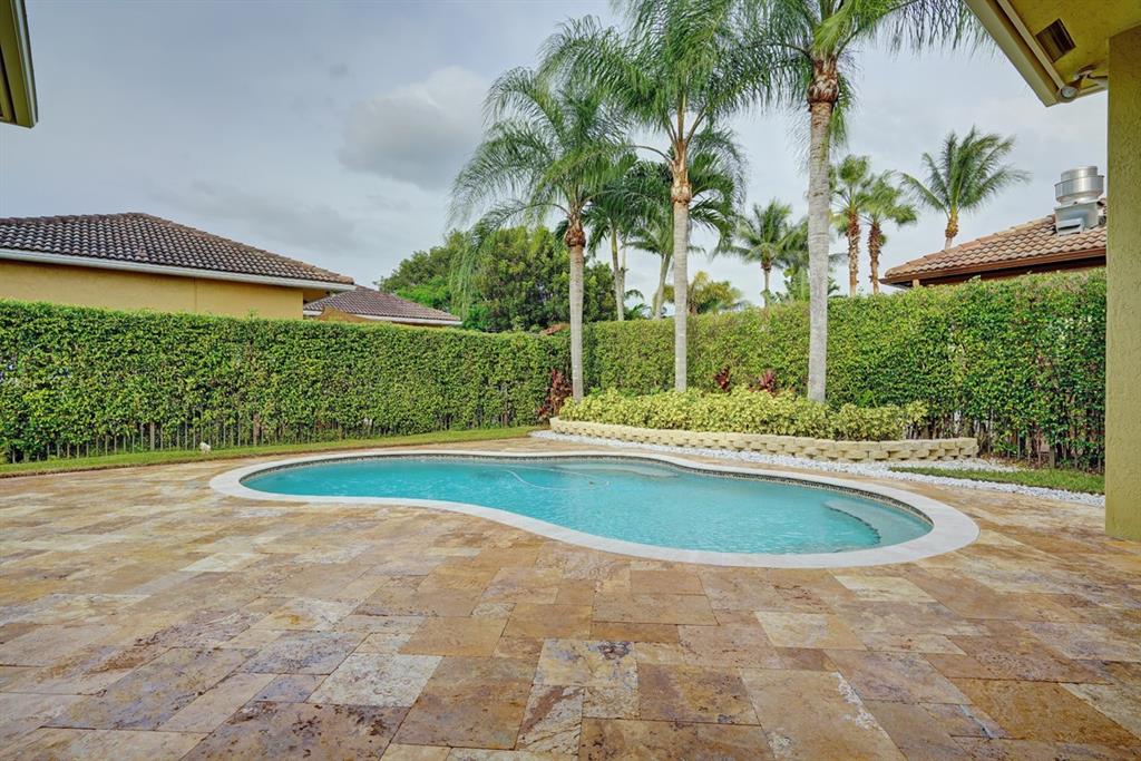 Don't miss this rarely available 1 story, updated pool home. This home is equipped with accoridan shutters, real hard wood in the bedrooms, air conditioned garage storage, double oven, travertine pavers around the pool, reverse osmosis water purifier, cabana bath, tray ceilings, formal dining, heated pool and much more. There is plenty of parking with an oversized circle driveway. Come see for yourself!