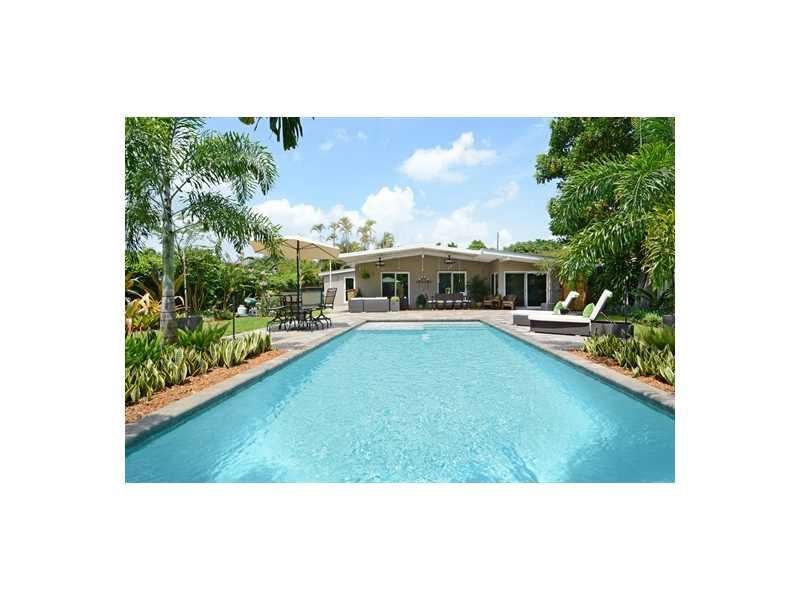 Remodeled from top to bottom. This 3/2 contains all new electrical, plumbing, metal roof, impact windows. Large open kitchen with all new stainless steel appliances, exotic granite counter tops. The home is equipped with a "smart home" electronic package. Each room and outdoor patio is wired for music to a "nest" which allows for controls via a Sonos System. Extensive patio and outdoor pool and decking which includes a large covered outdoor living space, perfect for entertainment.