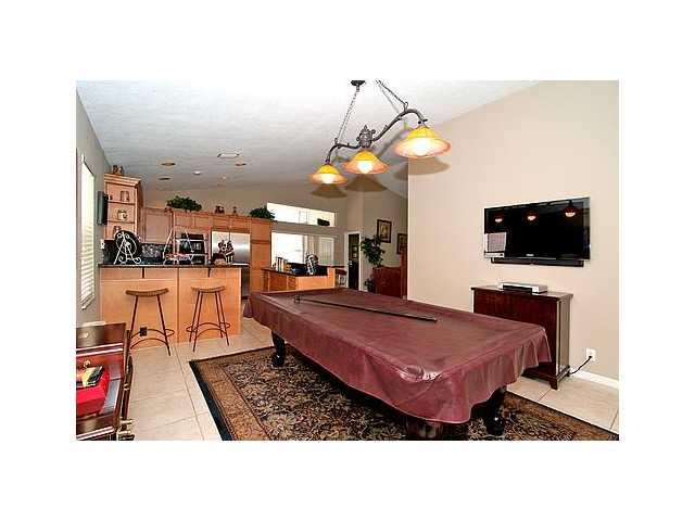 Welcome Home! Open floor plan with GOURMET KITCHEN. Beautiful cabintery, granite counters, stainless appliances. Upgraded tile in the living areas, hardwood in the bedrooms. Very spacious. Split bedroom plan. Screened in patio with Mexican tile, per fect for entertaining. Upgraded Master bath. Located on cul-de-sac street. Within ealking distance to Eagle Point Elementary. Community pool, 24/7 guard gated. This is what you have been waiting for. Come see today!