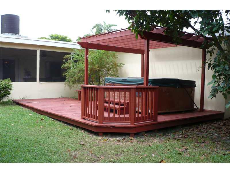 Curved drive to front shaded patio and entry. Enter foyer into oversize living room and open floor plan. Seperate TV/family room. Bright,open kitchen with new dishwasher. Large master suite with walk-in closet. 2 bedrooms split from master. Garage convert ed to laundry/office. Backyard Oasis with shaded heated spa on wood deck. Huge screened patio. Exterior storage buildings in rear. Home exterior recently painted. Mature, well maintained landscape front & rear. Nice combo of sun and shade.