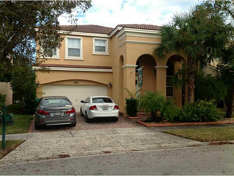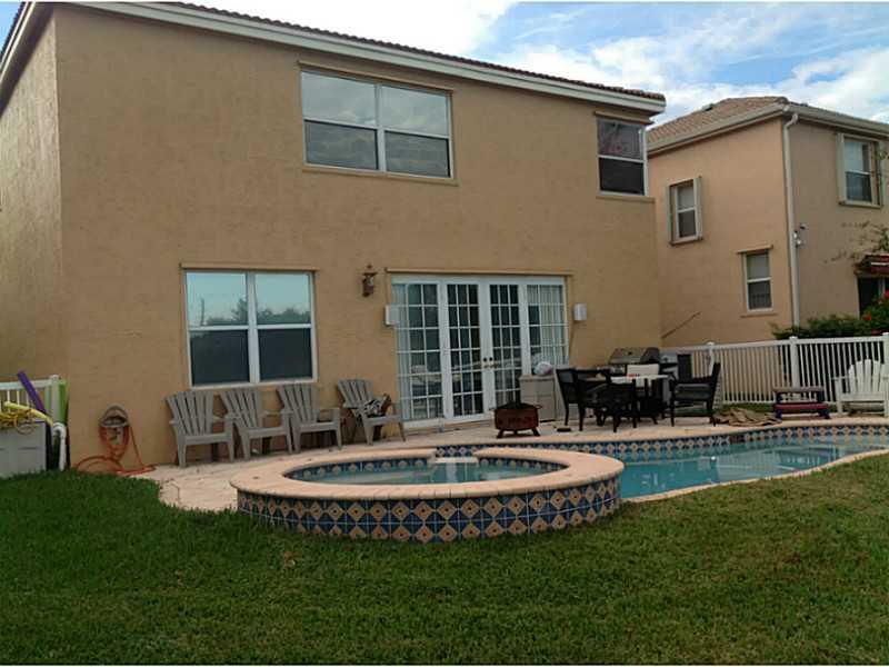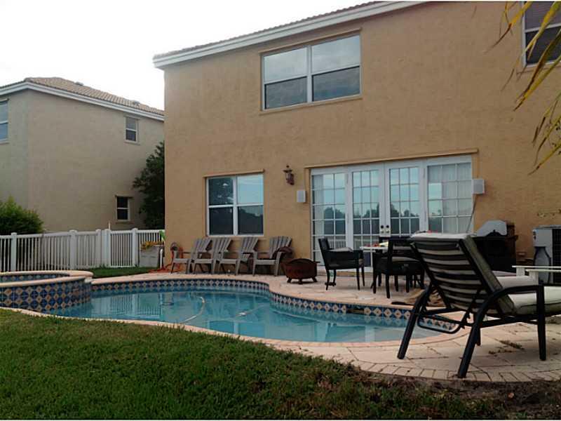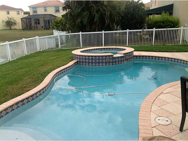 Riviera Isles Waterfront Pool home, complete with spill over spa. Views of pool and water from the kitchen, dining area, family room, master suite and guest room. Pool spa is heated! Tile in all living areas with carpet in bedrooms. Excellent floor plan w ith 4 bedrooms and laundry room upstairs. Large family room dining area and kitchen with huge island. Living room has two story soaring ceilings. 24 hour guard gated community. Passive park very close to the property.