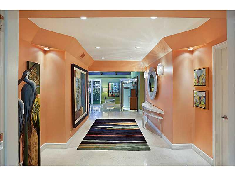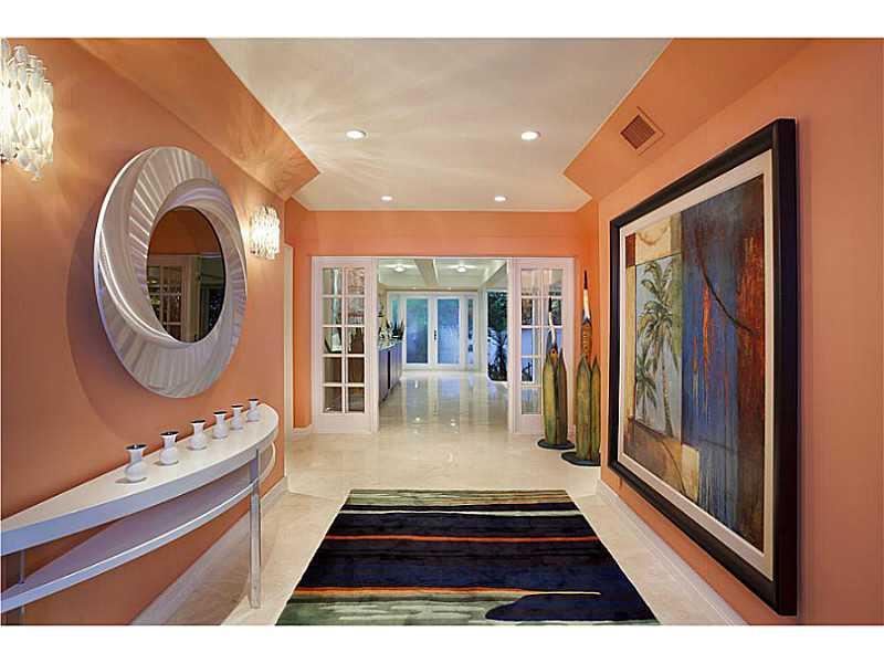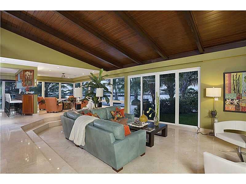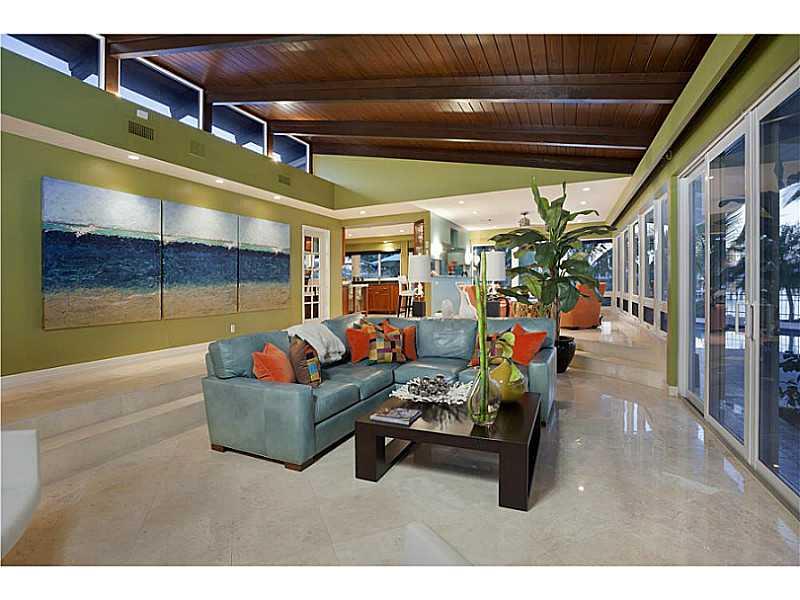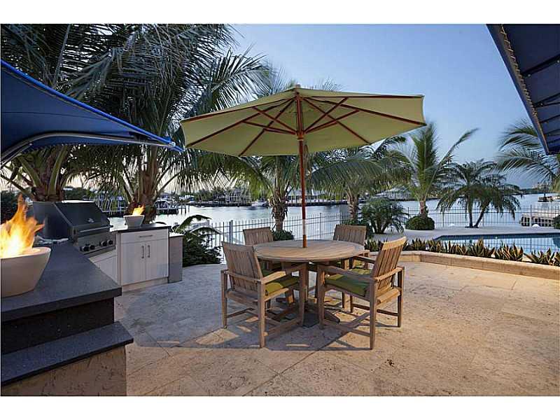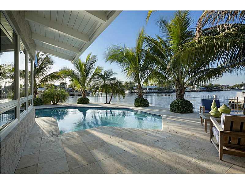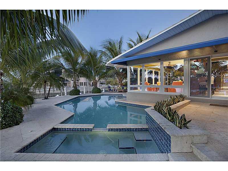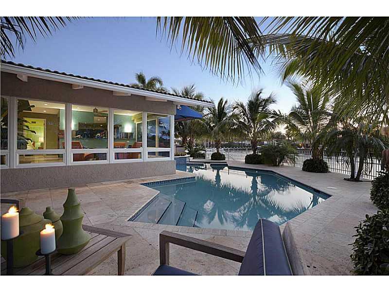 Perfect Tropical Point. Open the door to style & luxury. Professionally remodeled w/ impact windows, designer finishes, high ceilings, bright rooms. Intracoastal water views & garden views from every room. Open flowing floor plan perfect for entertaining & the ultimate boat parade party home. Deep water dockage for up to 80' yacht. Gourmet kitchen & summer kitchen overlooks pool, spa & Intracoastal. Grassed yard for pets or kids. Meticulous condition ready to move in. Walk to shops, restaurants & beach.