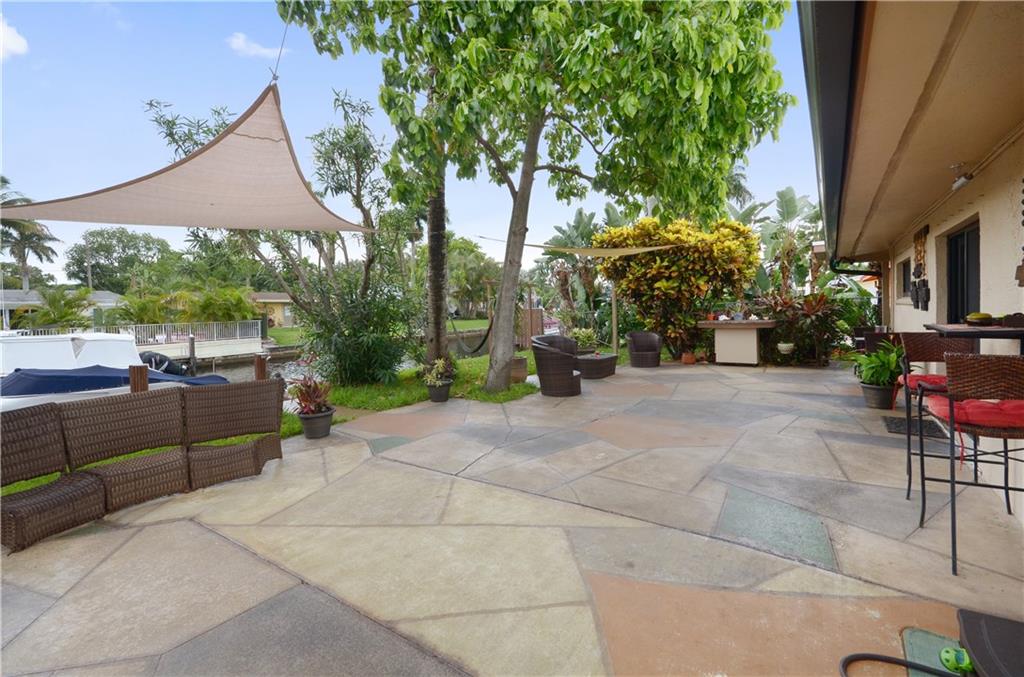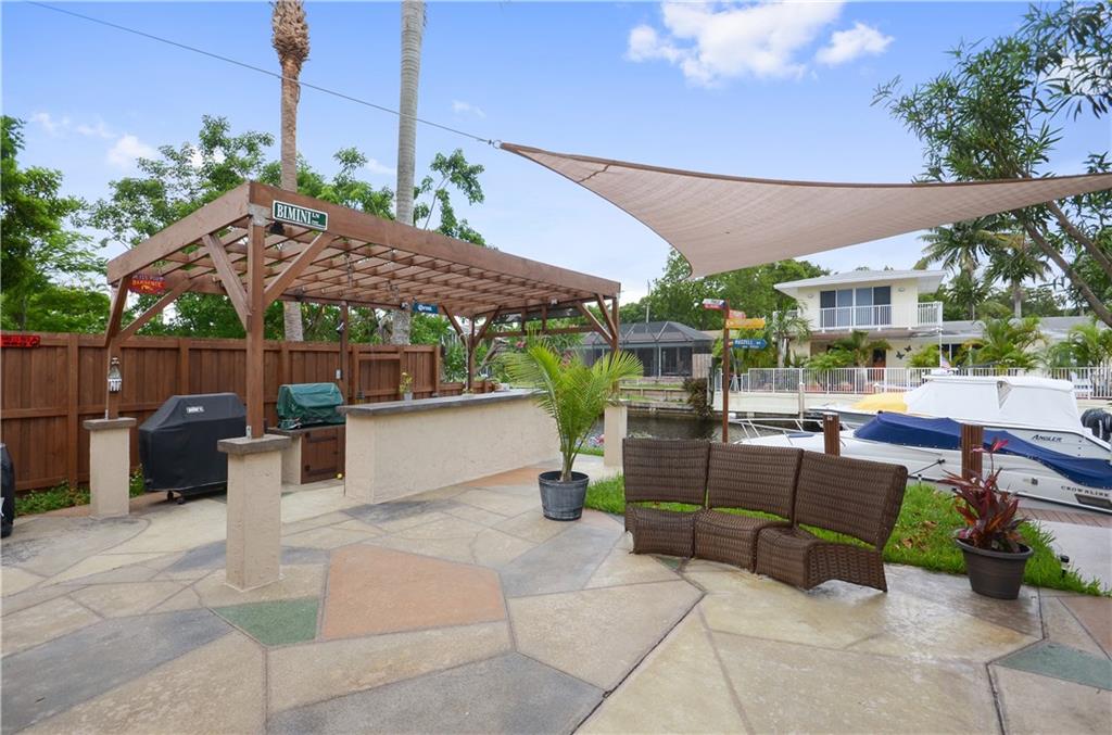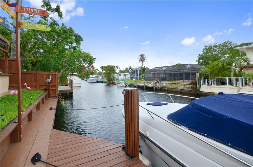 Beautifully updated 3 bed & 2 bath home on 65 feet of water with a new dock. Relax in the backyard on the water with a newly installed summer kitchen and never before used grill. Ocean access with no fixed bridges for this boater's dream home. Porcelain tile floors and kitchen was redone at the beginning of this year. One car garage provides plenty of storage. Split bedrooms give you peace and quiet and makes for this the perfect entertaining house. Impact windows throughout, AC less than 2 years old.